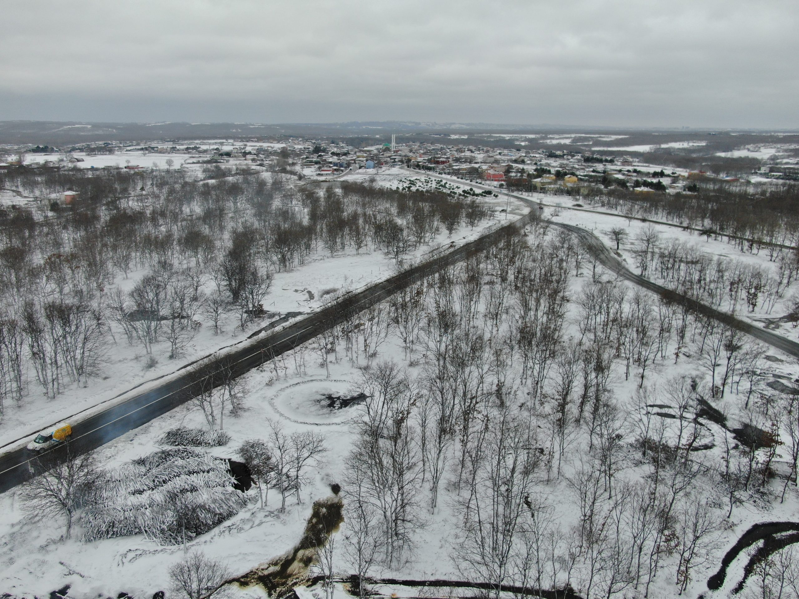 Snow that expected to be fall, had being effective in Turkey’s city of Istanbul. The snowfall showed its effect especially in the higher parts of the city and turned the city into snow white including Silivri district. Meanwhile, snow covered Danamandıra Natural Park revealed postcard images by offering a wonderful view. In addition to that, the visual feast in the Natural Park has recorded with drones.