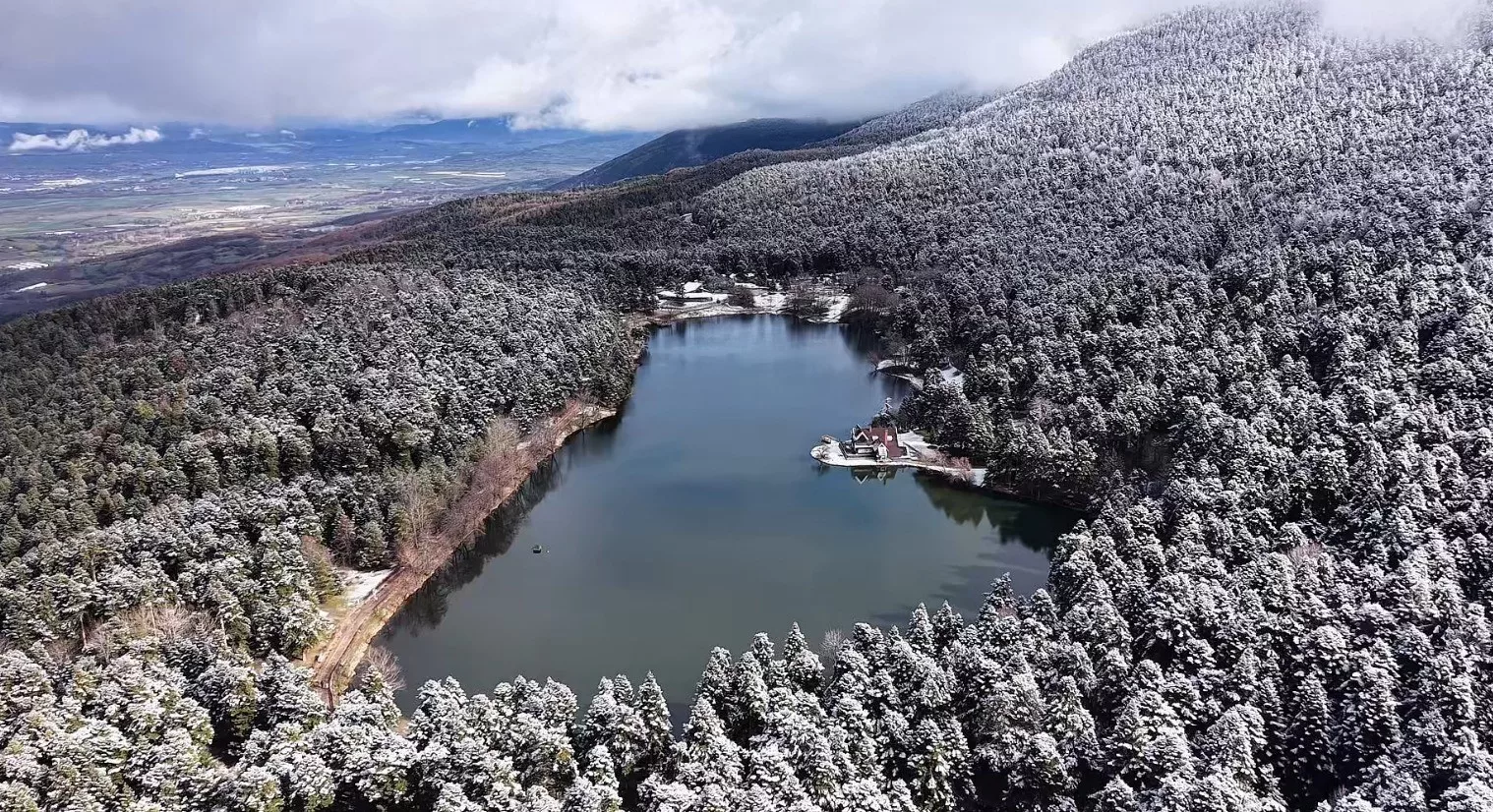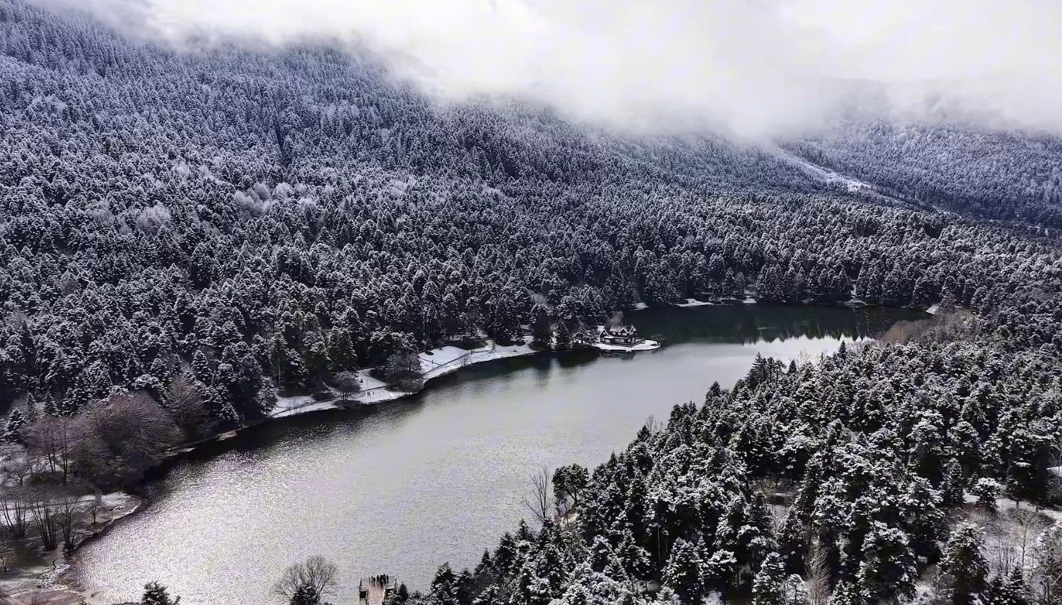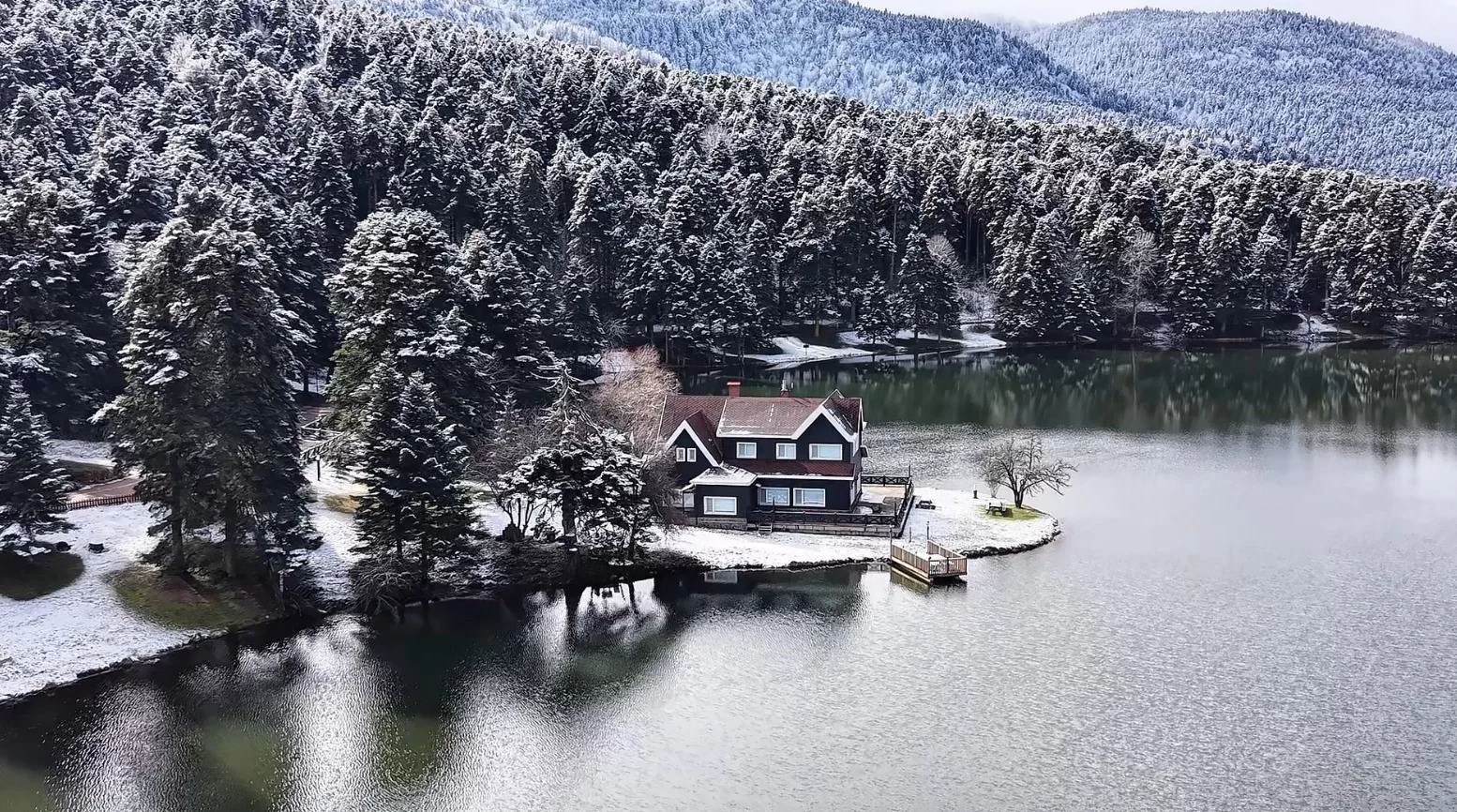 Drone footage showed snow-covered trees and the park’s iconic State Guest House reflected on the frozen lake, creating postcard-like scenes. A popular destination for both local and international visitors, Gölcük Nature Park continues to draw nature and photography enthusiasts during the winter months.