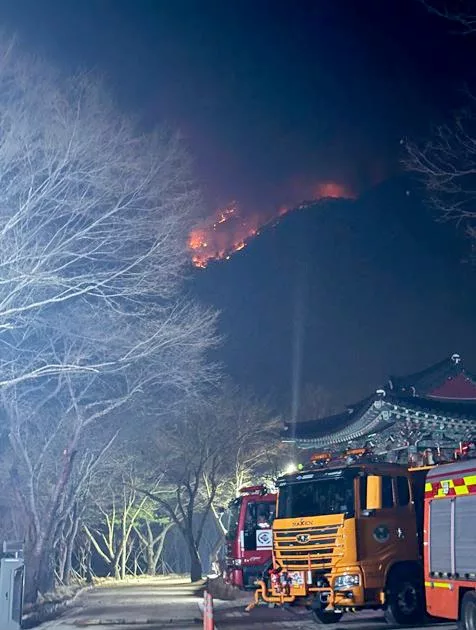The death toll from South Korea’s ongoing forest fires has risen to 27, with 32 injured. The fires, which began on March 21 in South Gyeongsang and North Gyeongsang provinces, continue to spread, reaching the coastal areas of the East Sea. Efforts to control the blaze in Uiseong and Ulju are ongoing, with military support. Power and water outages have been reported in Andong and Yeongdeok.