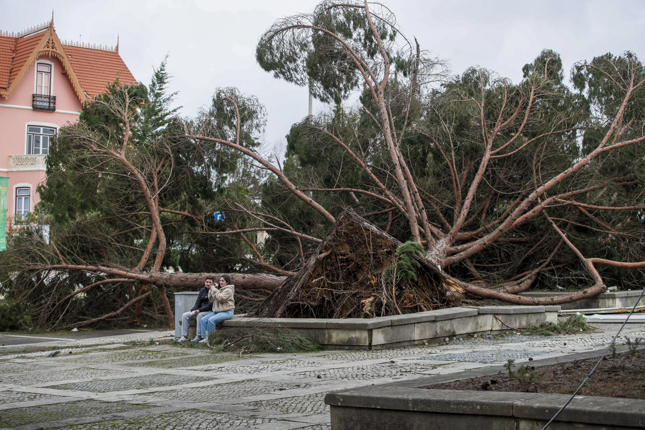 Storm Kristin killed at least five people in central and northern Portugal, triggering floods, landslides, and widespread damage, authorities said. Heavy rain and winds of up to 150 km/h caused more than 3,000 incidents and left over 850,000 people without electricity, severely disrupting transport and daily life. Major roads and rail lines, including the main route linking Lisbon to northern Portugal, were closed as schools and public buildings shut down. The storm later moved into Spain, where emergency services handled around 2,000 weather-related incidents and authorities issued warnings for hurricane-force winds.
