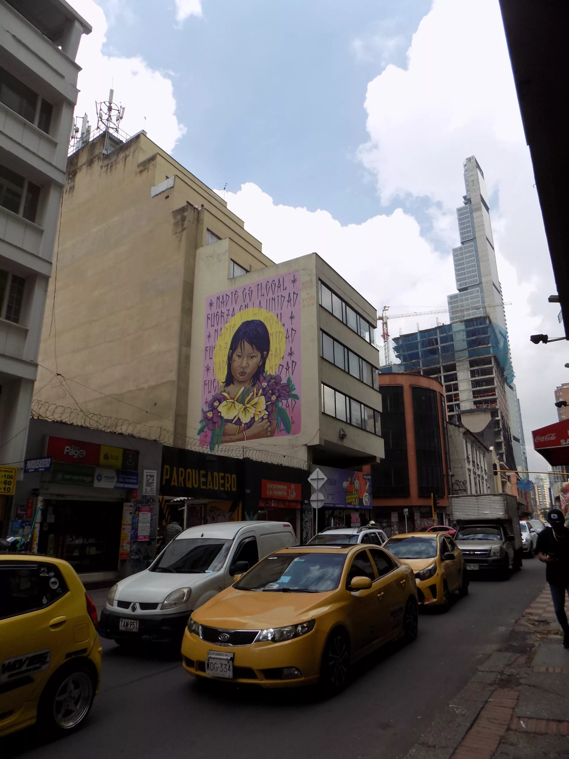 Many works reference the 2016 peace process with the Revolutionary Armed Forces of Colombia, including messages such as “Sanaremos” (“We will heal”), symbolizing recovery after decades of conflict. One of the city’s most striking pieces is the “INK” inscription atop the Bacatá skyscraper, considered the highest graffiti in Bogotá.