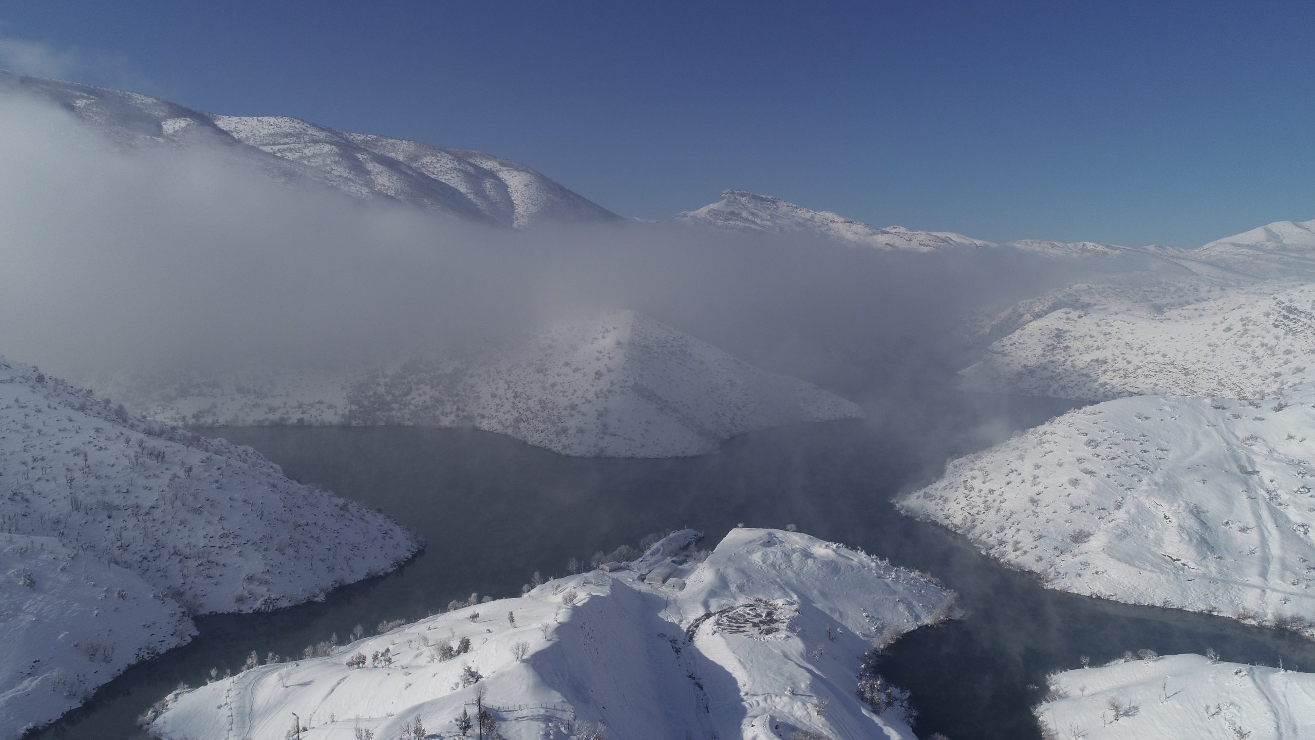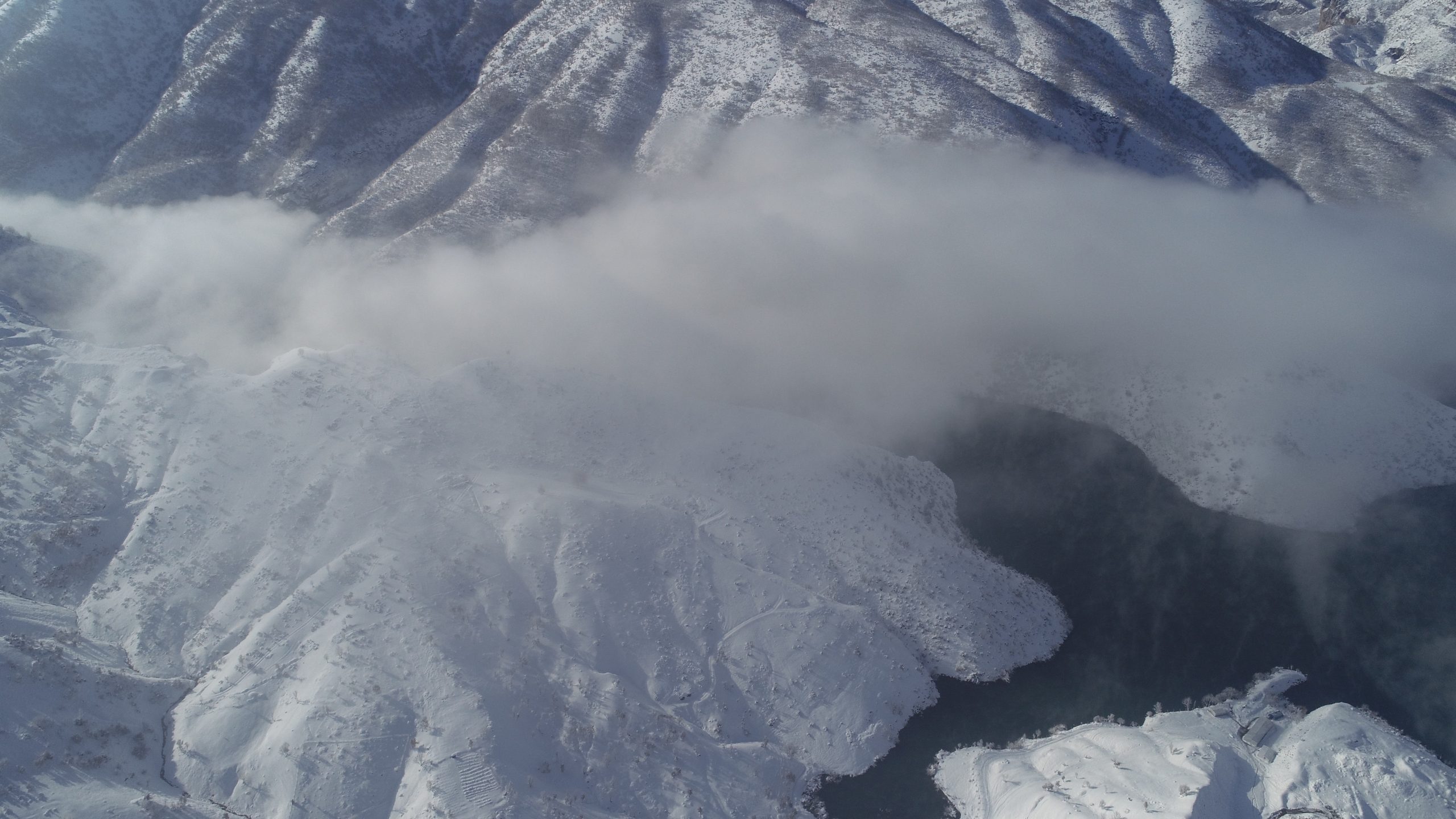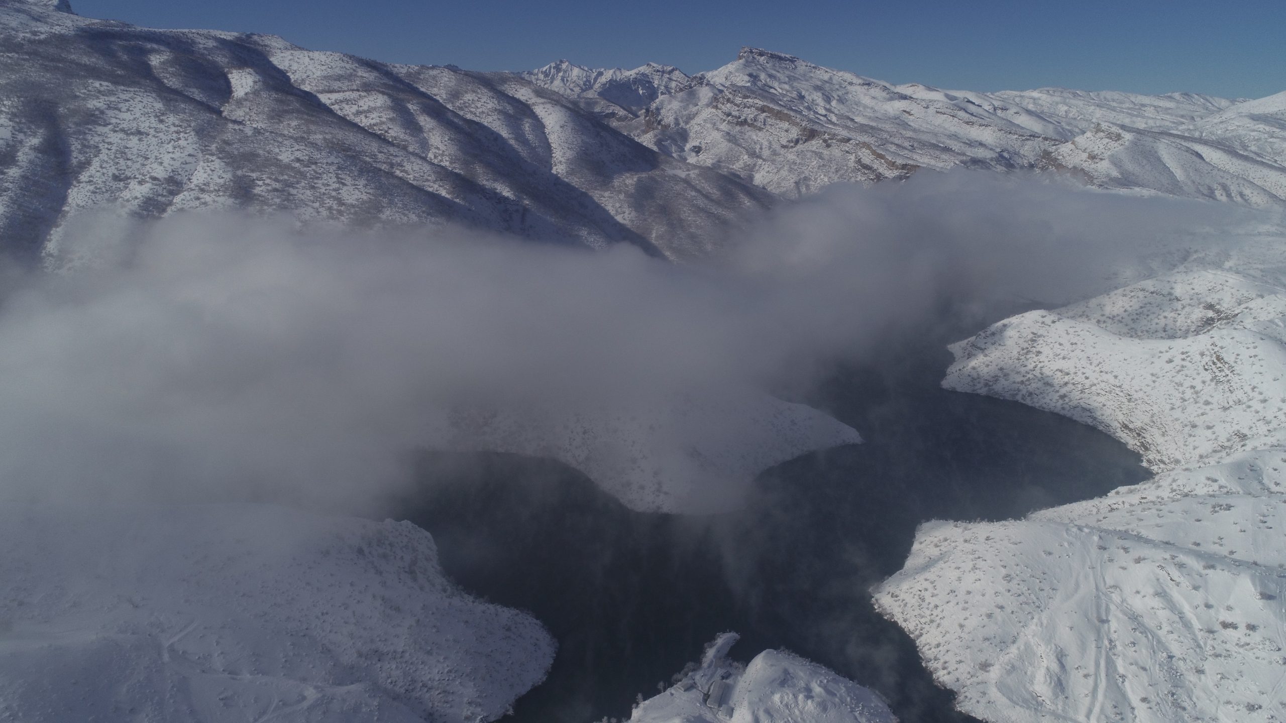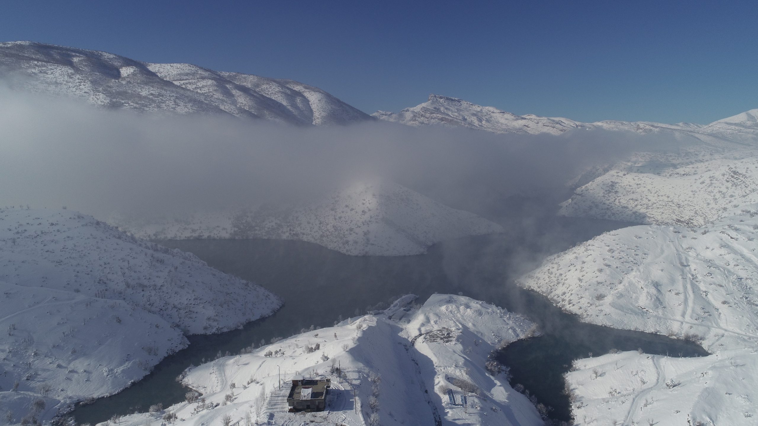 After the snowfall that has been effective for 2 days in Hilal town located at Uludere district in Turkey’s city of Şırnak, the rising sun and fog clouds created postcard images. The fog clouds formed by the effects of the dams built in Uludere district created unique landscapes in the region. Meanwhile, the residents recorded the fog clouds, which formed in the morning and lasted until noon, with their mobile phone cameras. Apart from the dams, skies of the Uludere, İnceler, Taşdelen, Kalemli and Ballı villages were also decorated with the fog clouds.