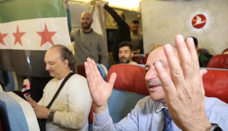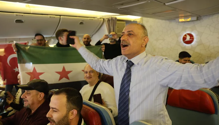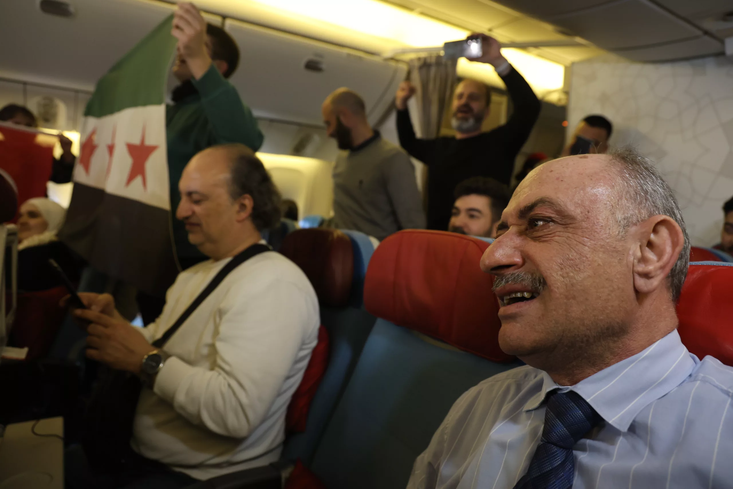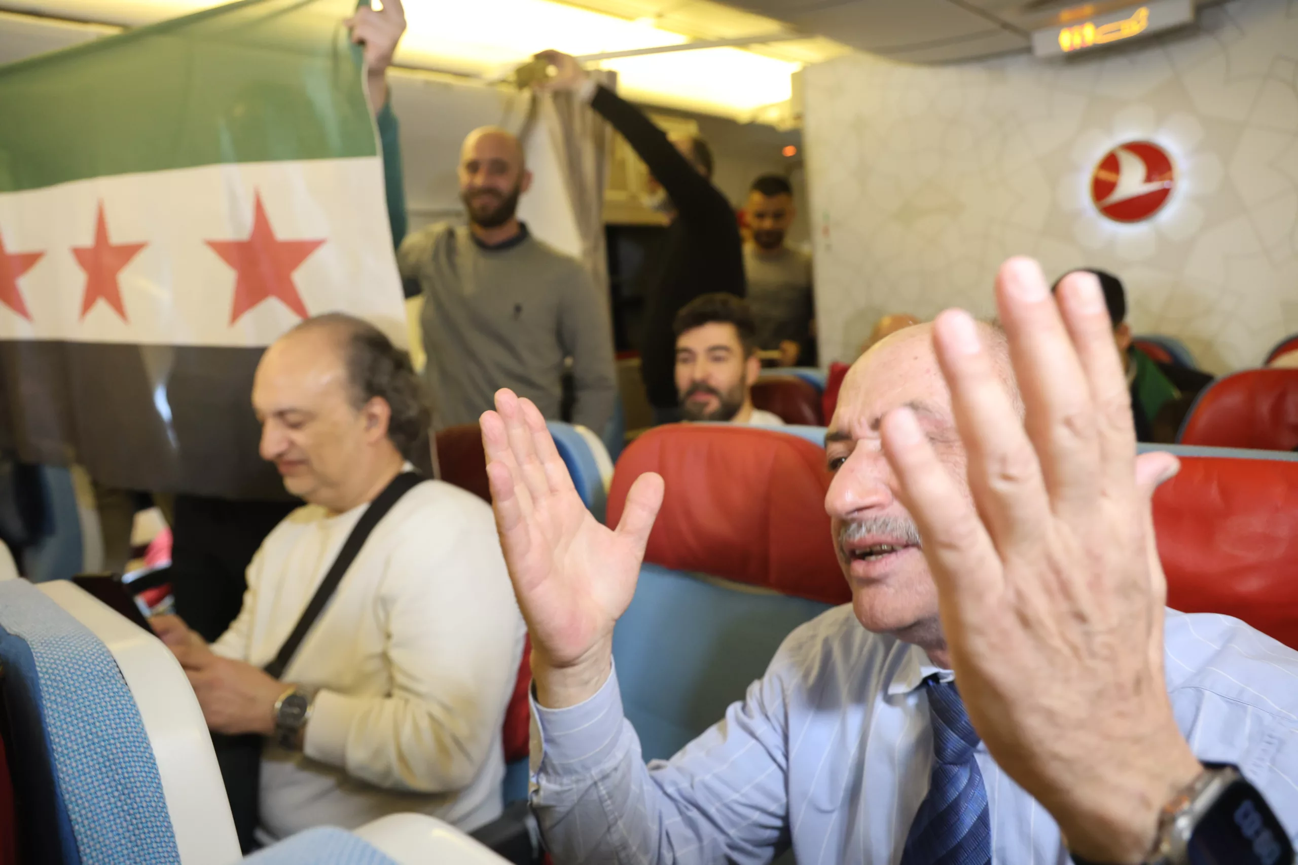 Syrian citizens who boarded on the plane of Turkish Airlines, which restarted flights between Istanbul and Syria after 13 years, sang freedom songs and carried Syrian flags at the Istanbul Airport and on the plane. Some passengers cried out of happiness.
