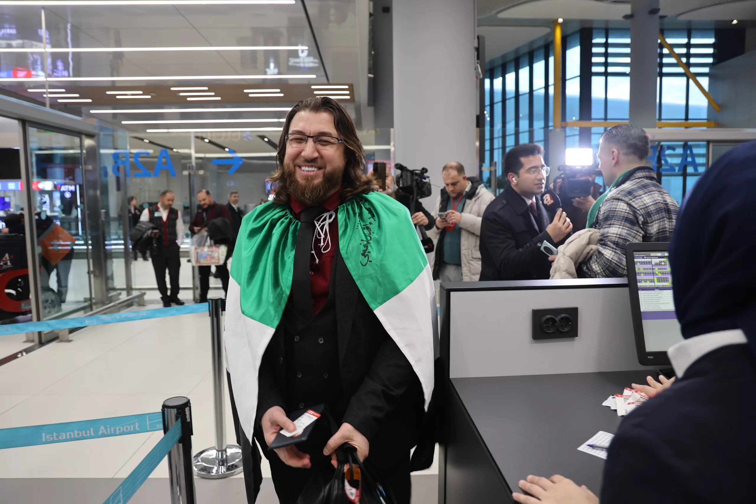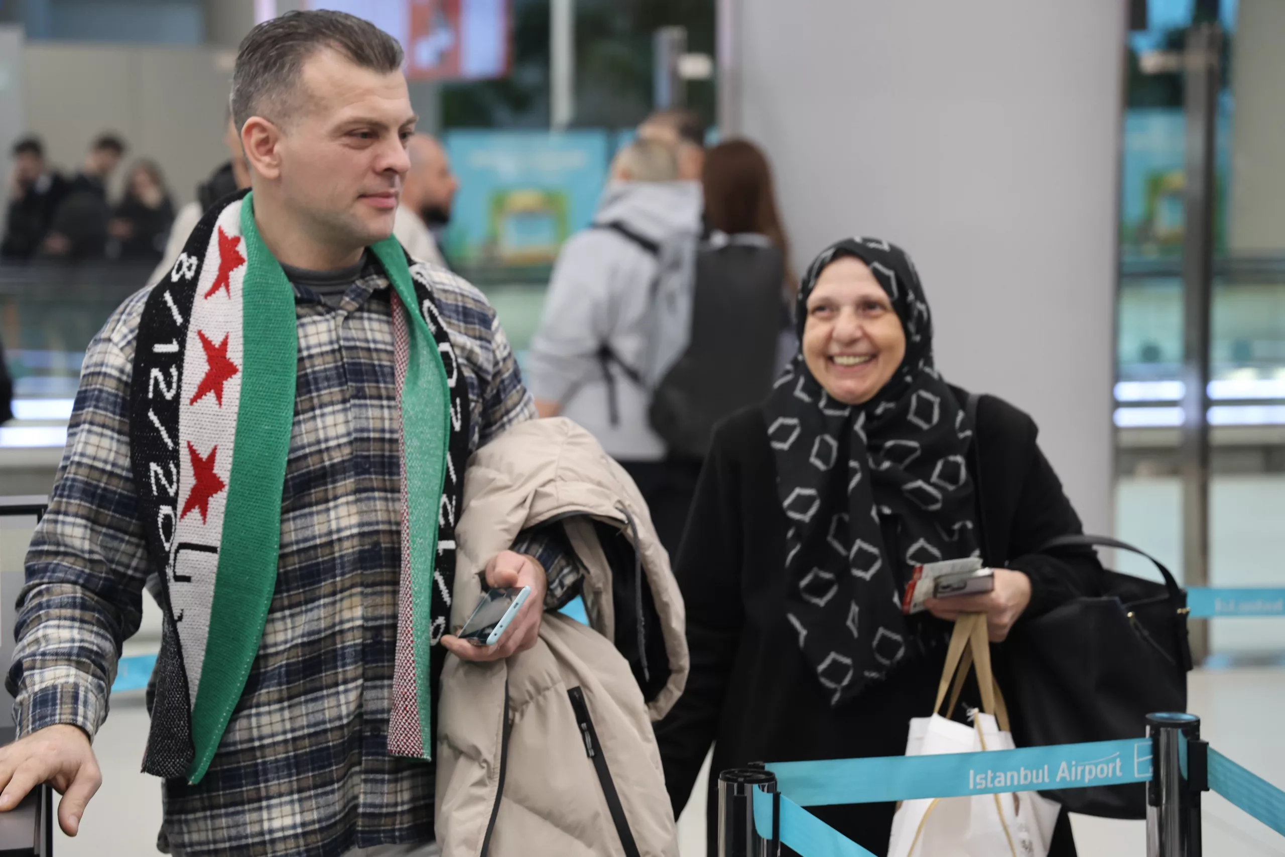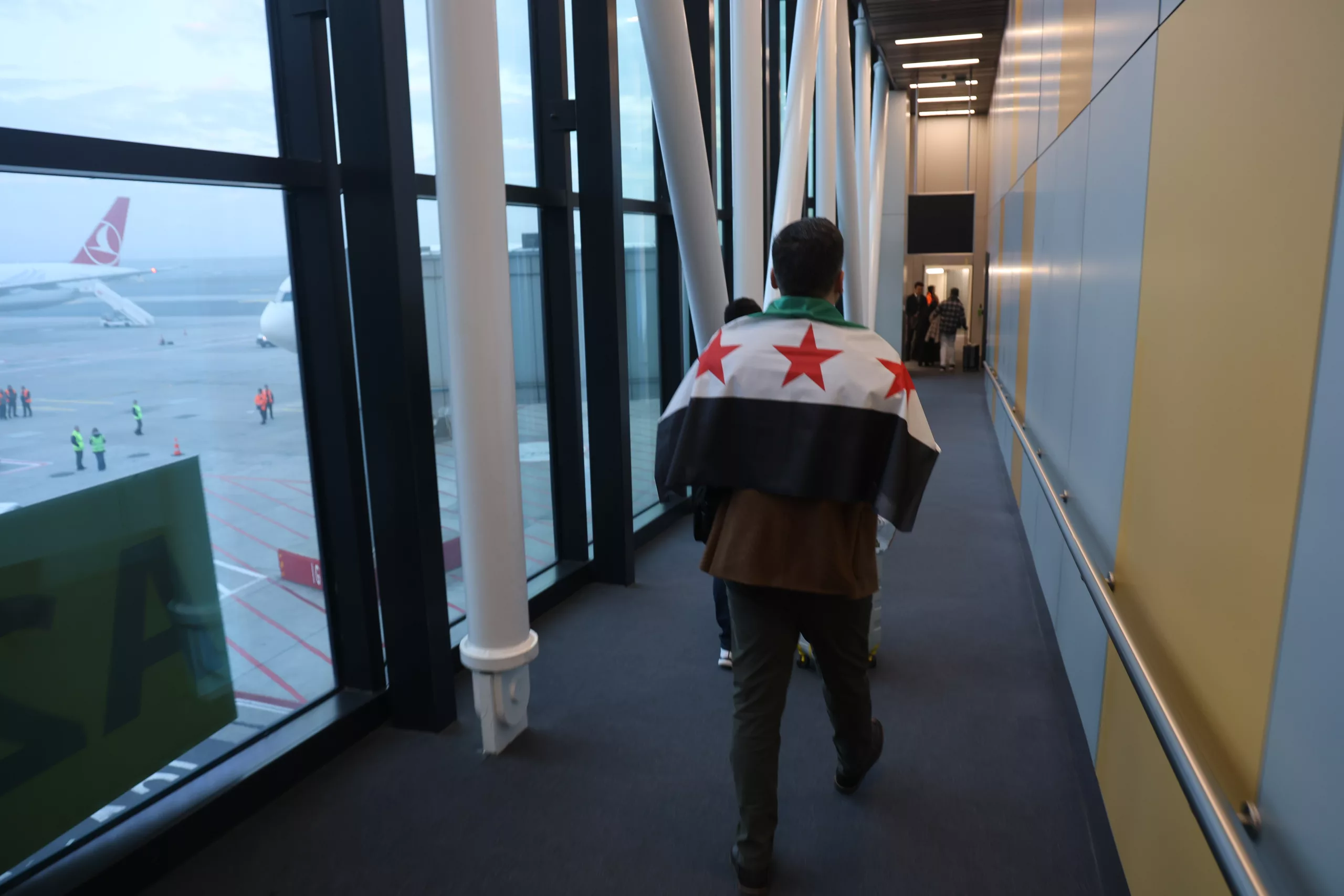 Syrian citizens who boarded on the plane of Turkish Airlines, which restarted flights between Istanbul and Syria after 13 years, sang freedom songs and carried Syrian flags at the Istanbul Airport and on the plane. Some passengers cried out of happiness.