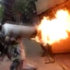 brave firefighter carries flaming gas cylinder out of fire in mexico