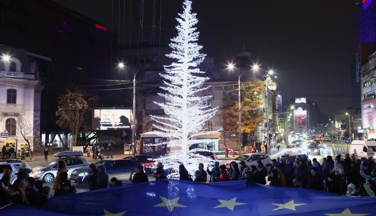 About 10,000 people marched in Bucharest, Romania, to protest alleged irregularities in the judicial system, chanting slogans such as “Justice, not corruption.”