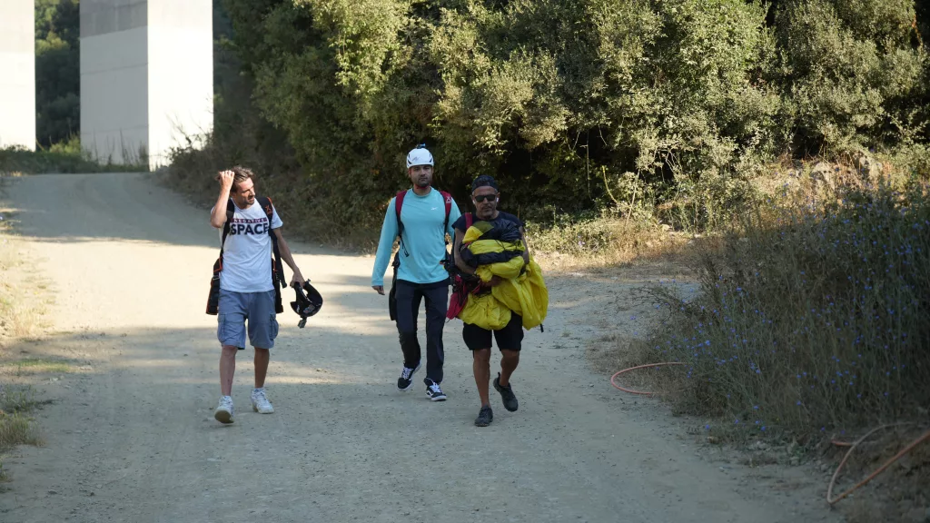 Extreme sports athletes Mert Güngörmüş, Samet Baydar, and Cengiz Koçak parachuted from an 86-meter-high viaduct in Istanbul’s Arnavutköy district. The daring jumps, performed early in the morning, were recorded by drones and helmet cameras.