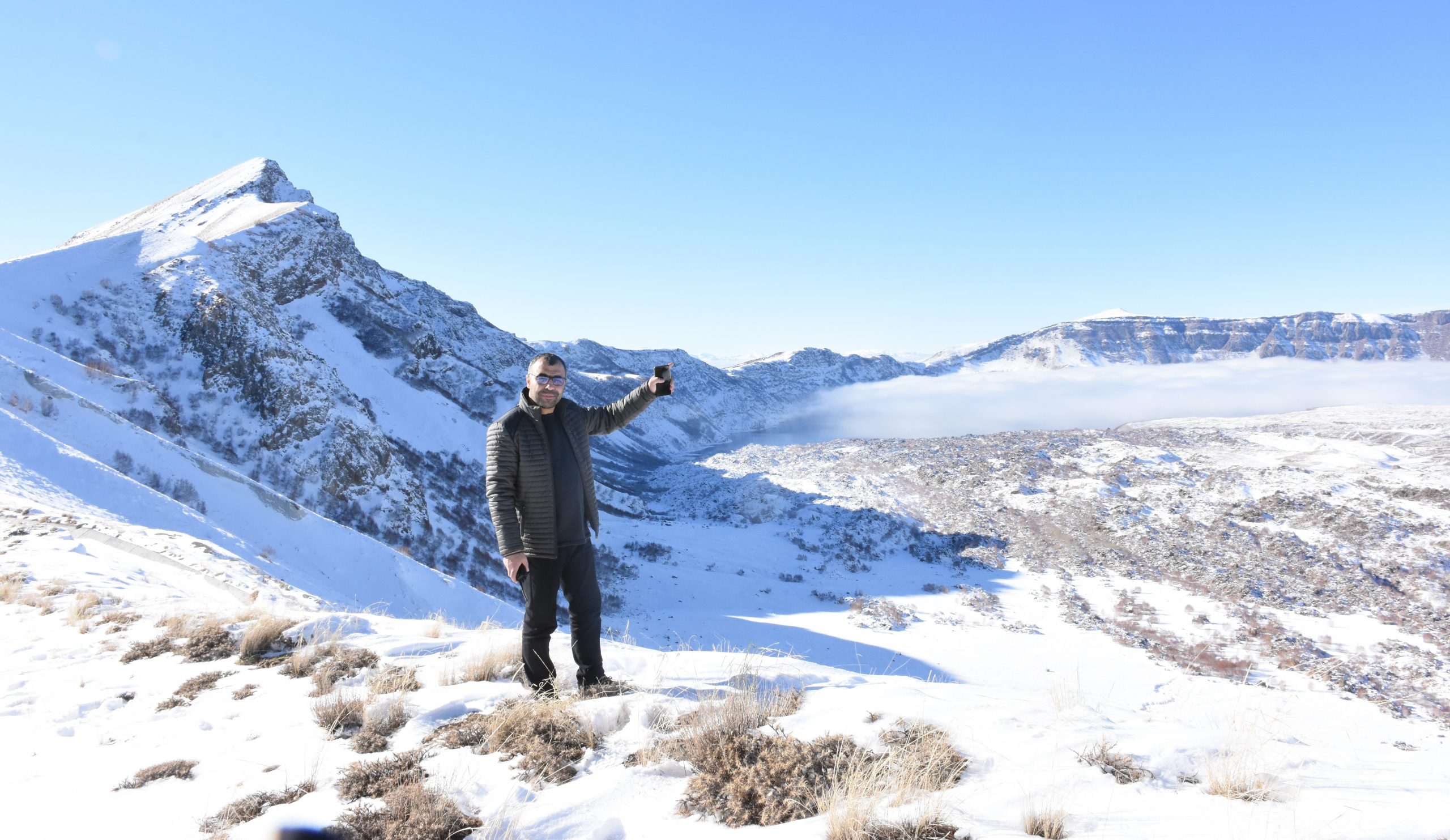 Bitlis Journalists Association (BİGACEM), who carried out the project named “Four Season Bitlis” with the aim of contribute introduction of Bitlis city of Turkey and districts, started up to work for the project. BİGACEM project team rolled up their sleeves for project that aims to take photographs and record videos of the historical and natural beauties around the city from sky and land by various techniques. Team gave start to the project from altitude of 2.250 meters high peak of snowcapped Nemrut Caldera, which is also world 2’th biggest crater lake. After set off to Nemrut road to locate places that will shoot take place for 4 seasons, BİGACEM project team located the places, which shoot will take place, with Global Positioning System (GPS) one by one. The project team, which also took test shots from the areas designated for winter shooting, aims to carry out the same works in other areas in Bitlis and its districts.