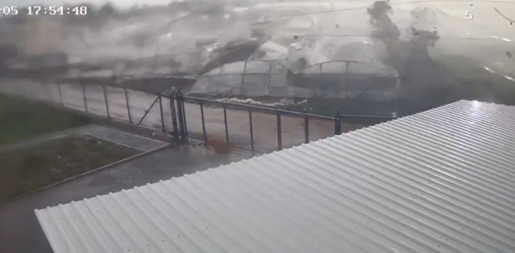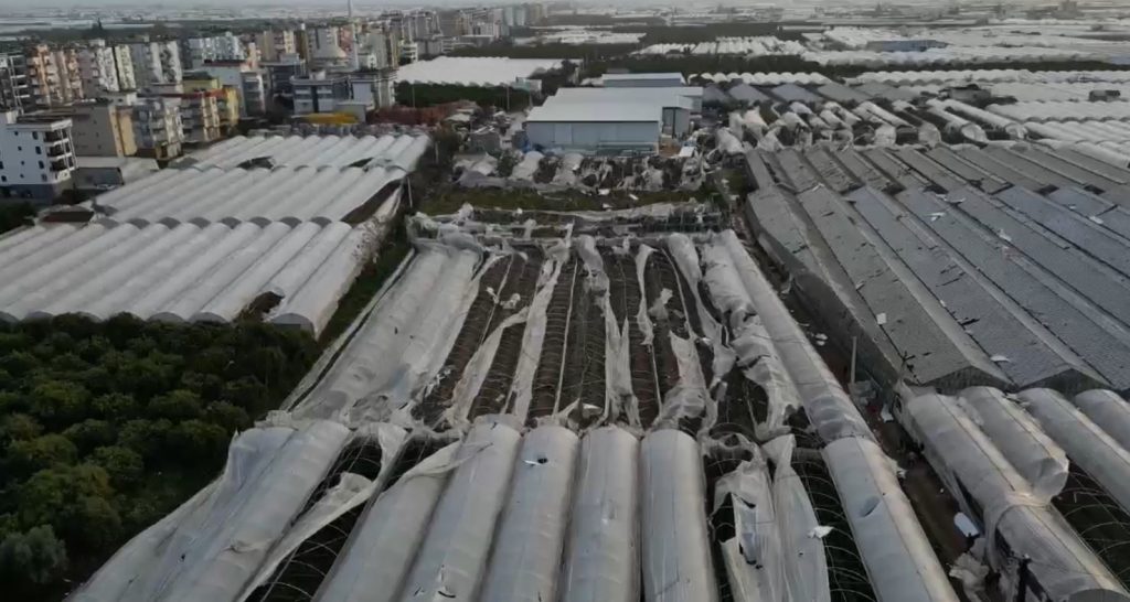 A tornado struck Antalya’s Kumluca district in Türkiye, damaging agricultural areas, greenhouses, and homes. Security cameras captured the chaotic moments as the tornado swiftly passed through, uprooting trees, damaging vehicles, and causing power outages. The tornado’s force even removed solar panels from houses, resulting in material damage and chaos in the affected neighborhoods. A child was slightly injured in a car when a solar panel fell during the storm. The incident prompted disruptions to electricity supply in some areas due to damaged transmission lines.