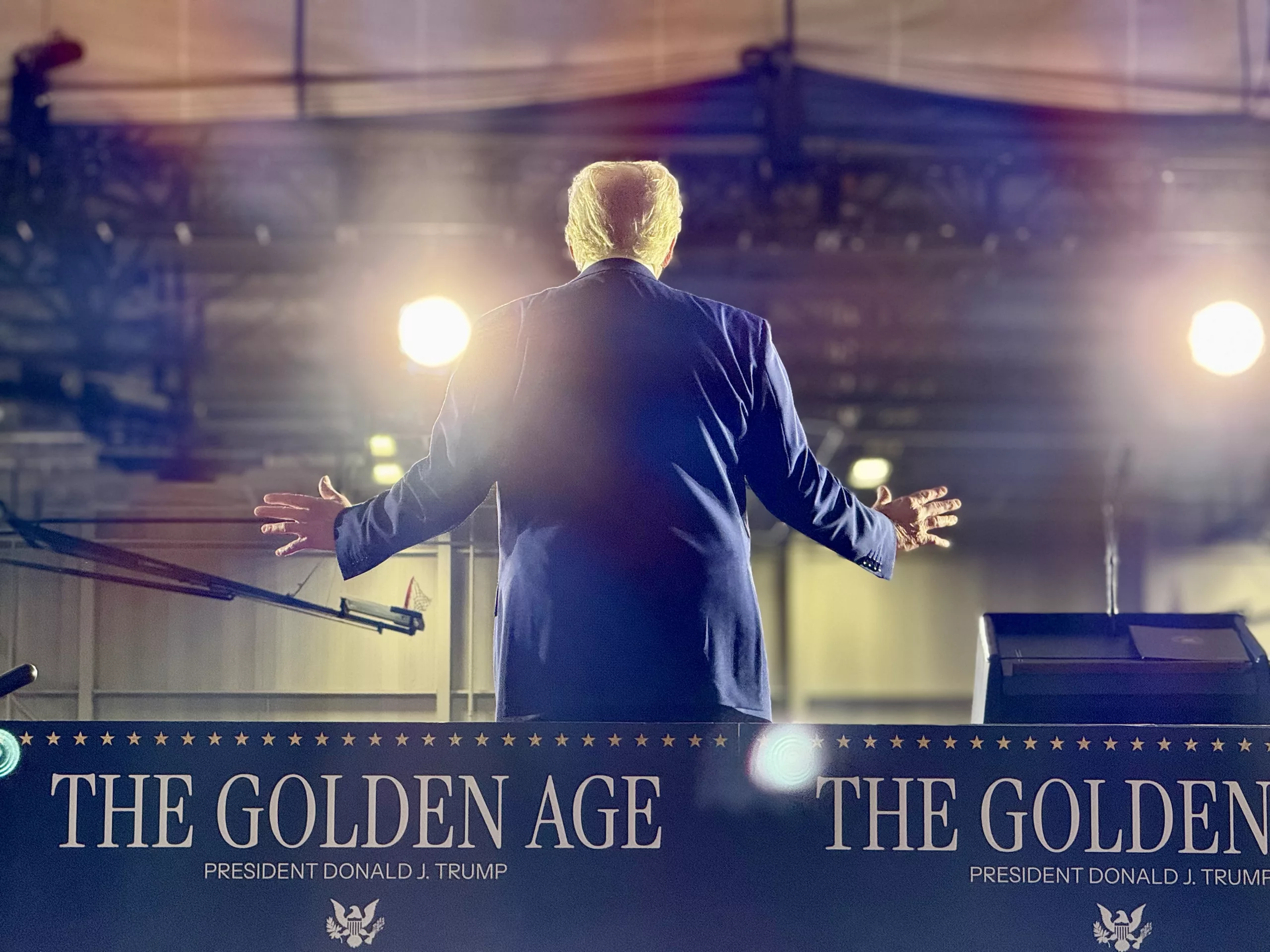 He praised Elon Musk and Mehmet Öz and vowed to send American astronauts to Mars. Security was tight at the event, with both supporters and protesters present.