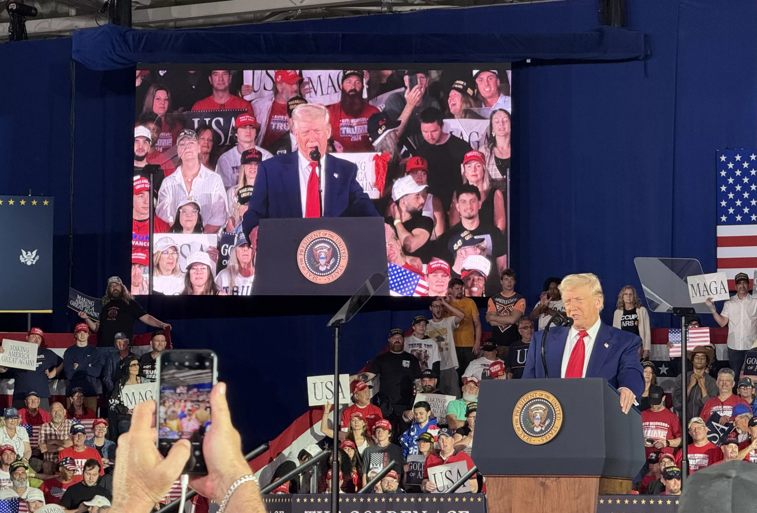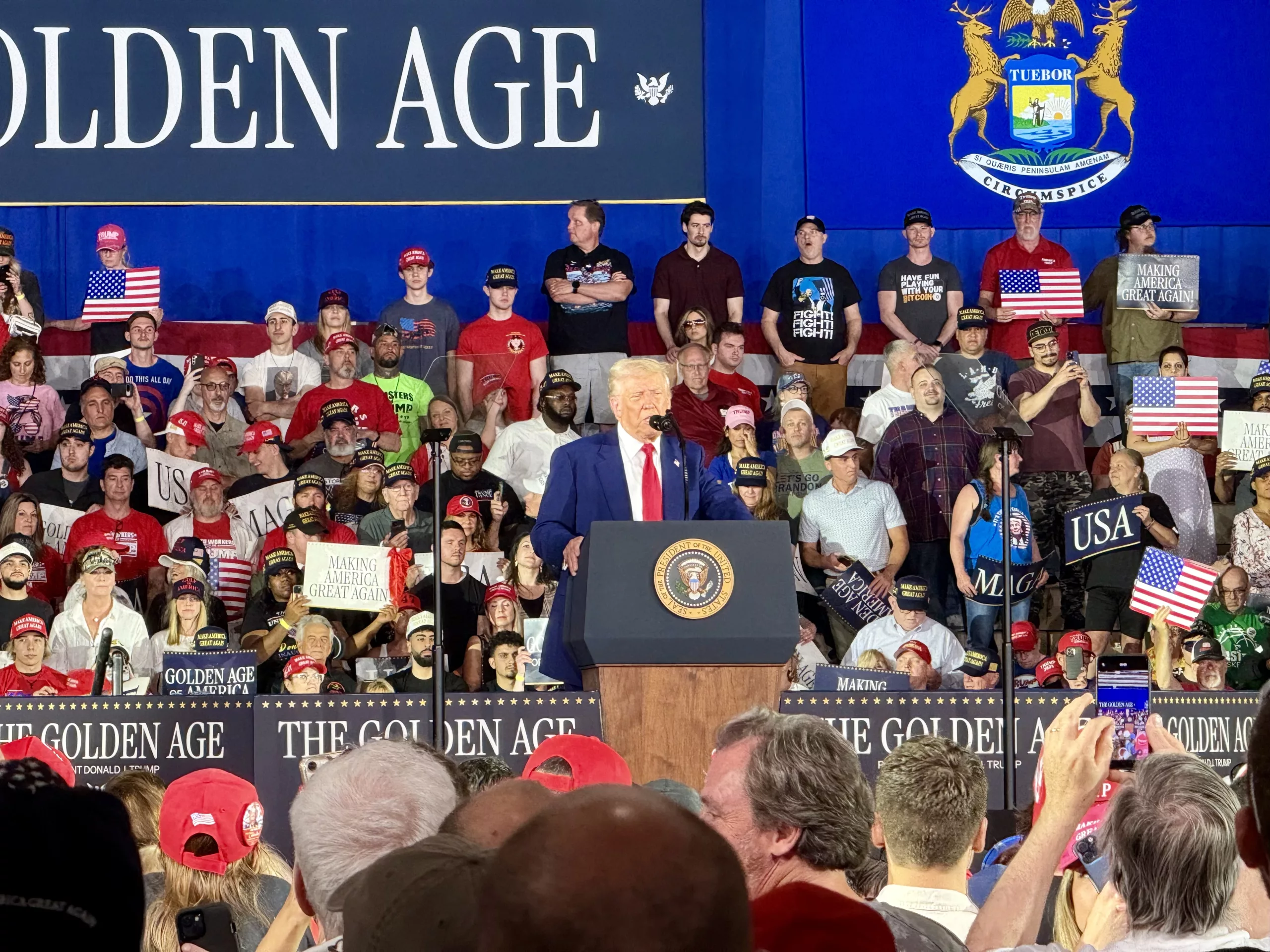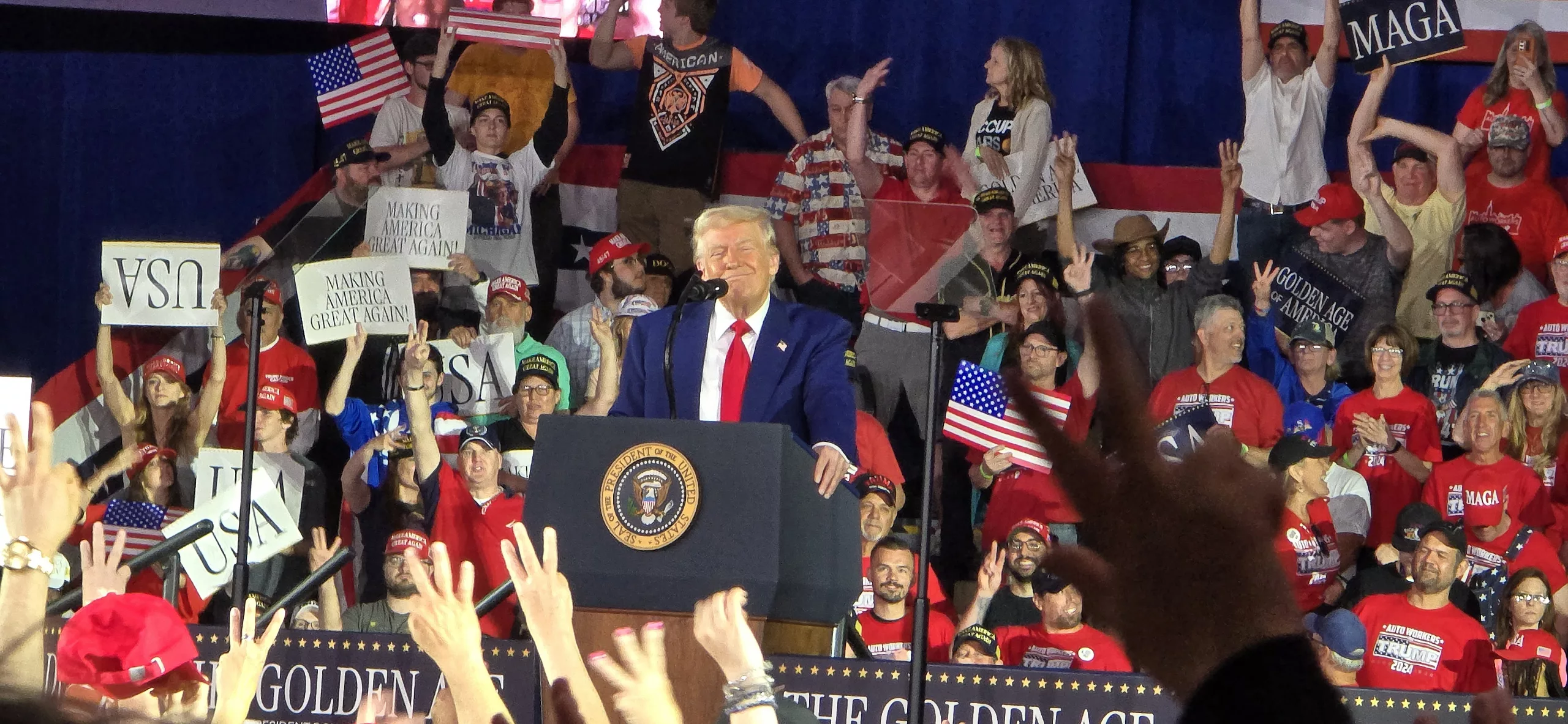 US President Donald Trump marked his 100th day in office with a rally in Warren, Michigan, drawing thousands of supporters. He emphasized economic growth, border security, and support for American workers.