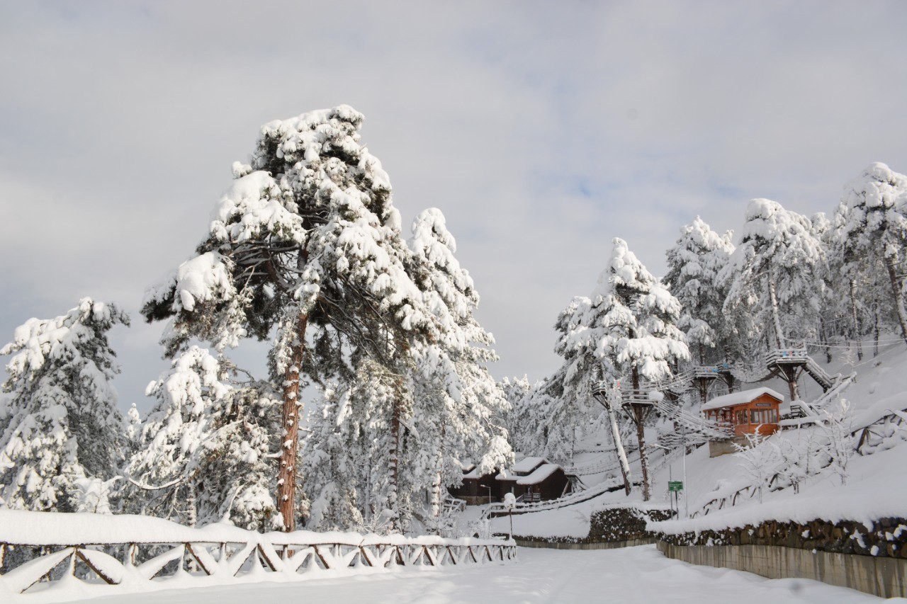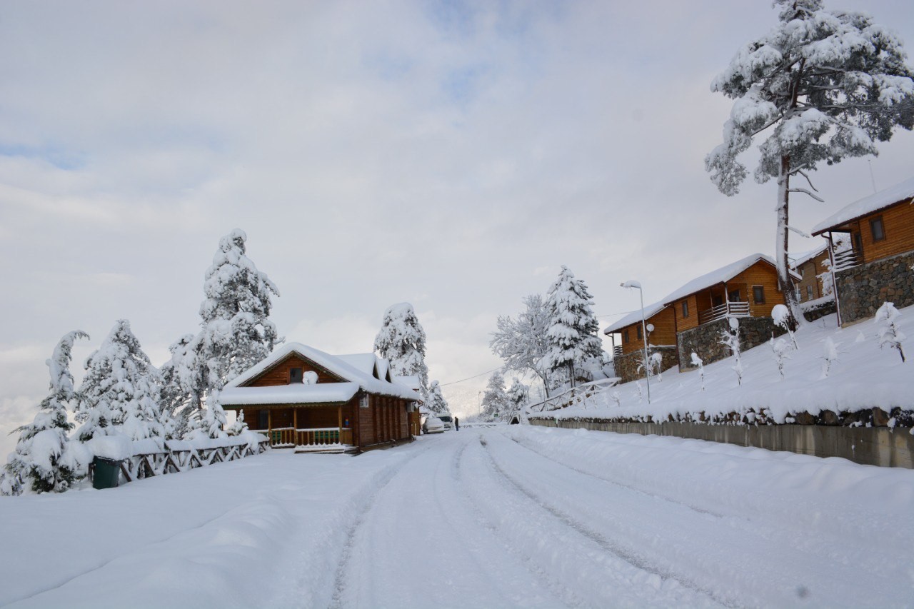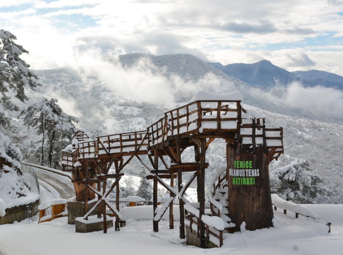 The Yenice forest in Turkey’s Karabük district was blanketed in white. After three days of snow, the Ihlamur Teras – an observation terrace – built by the municipality and the bungalow houses, provided spectacular view. The Yenice forests are one of Turkey’s largest block forests and one of Europe’s top 100 forest hotspots.