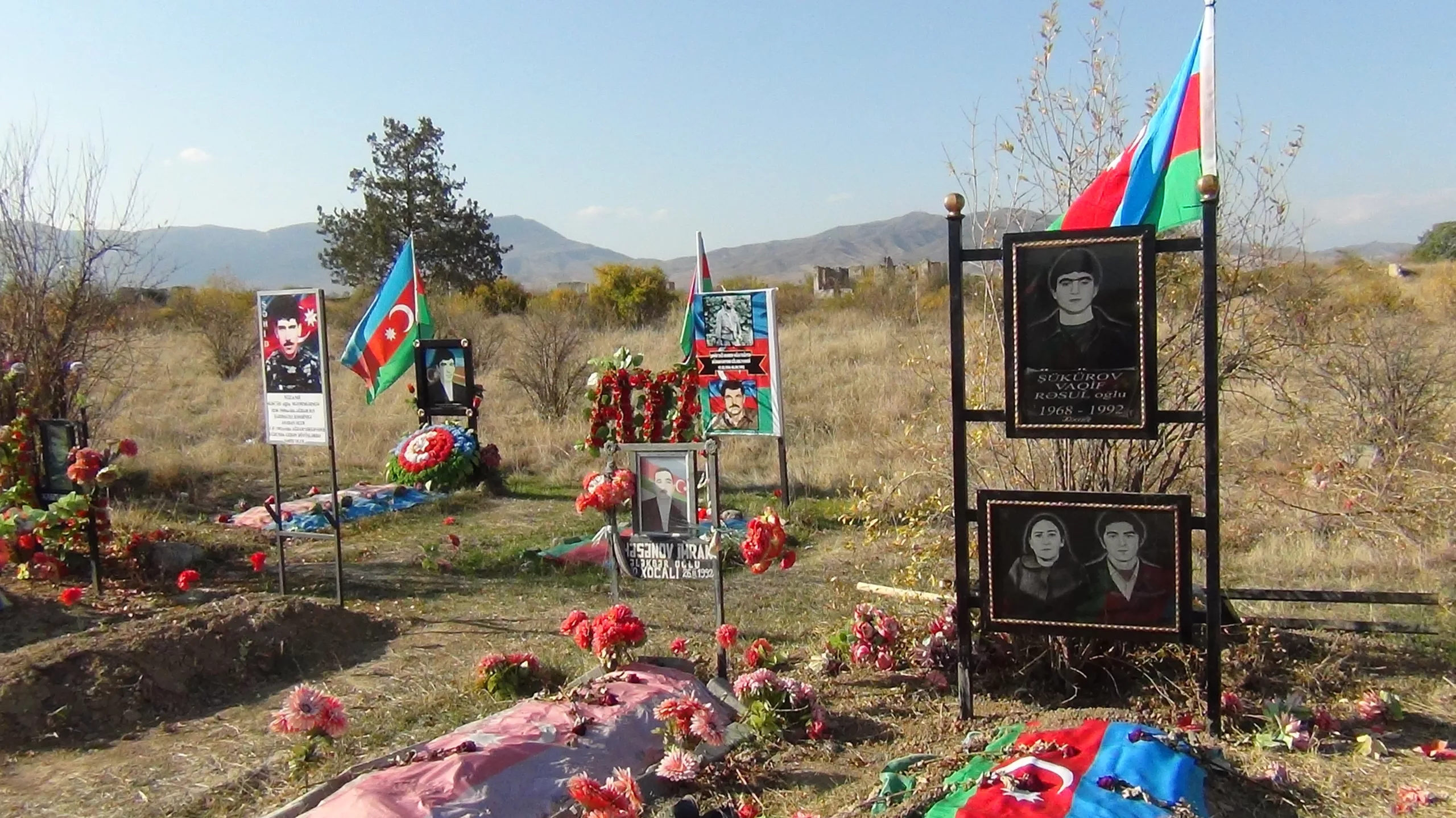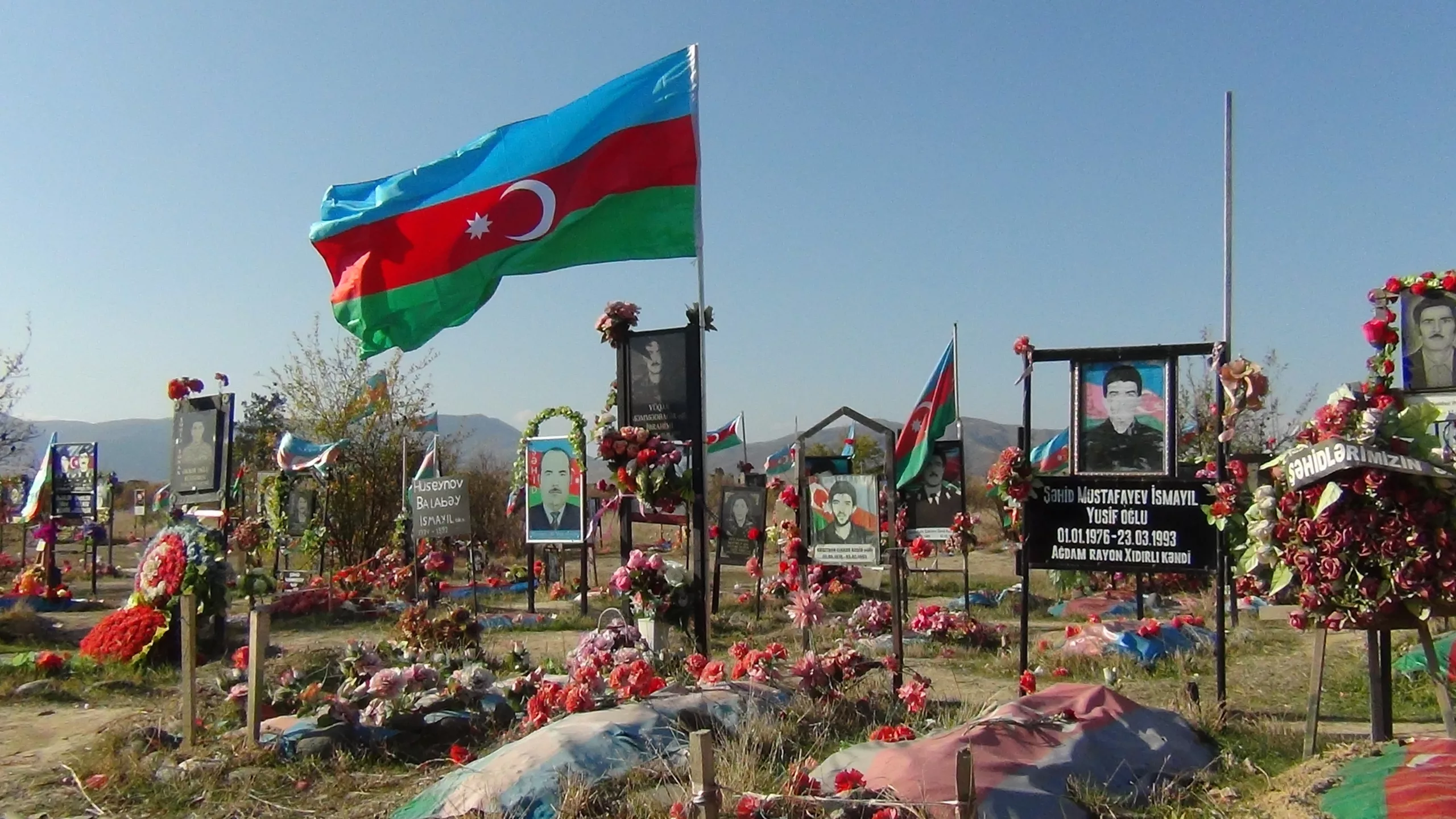 Azerbaijani and Turkish flags now flutter over the graves of Khojaly martyrs in Aghdam, Azerbaijan, as citizens return to their homeland after three decades of displacement following the Karabakh War. It was revealed that Armenian forces destroyed and desecrated graves while retreating during the 2020 conflict.