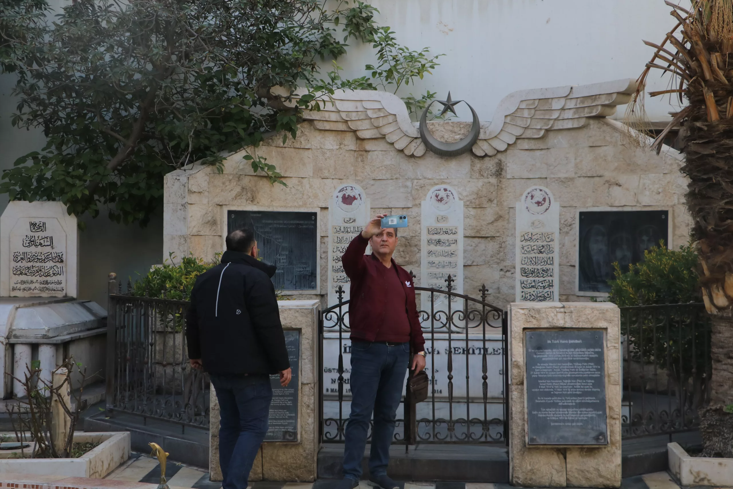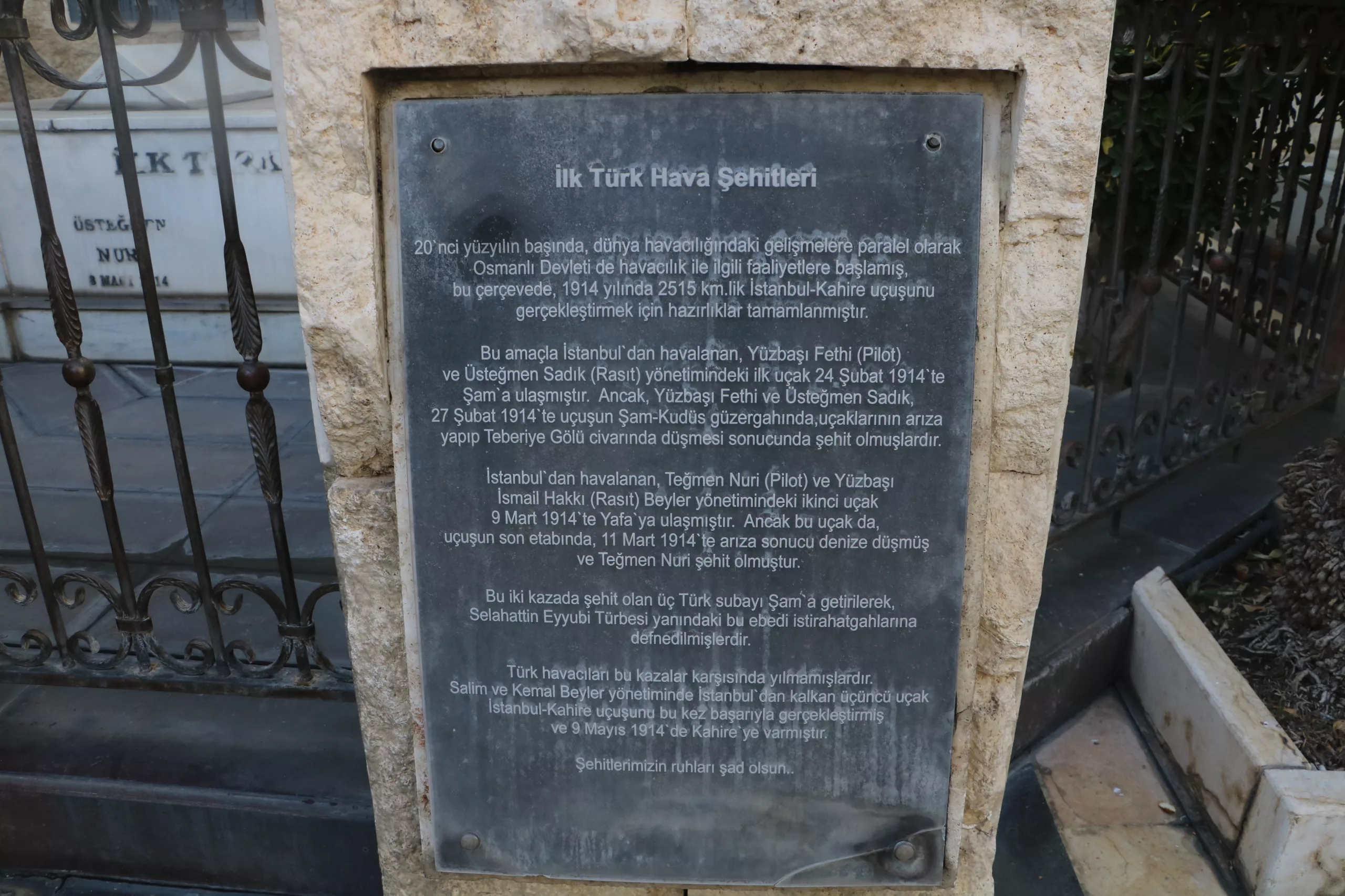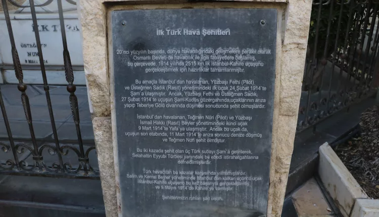 The graves of Turkish aviation pioneers Pilot Captain Fethi, First Lieutenant Sadık, and First Lieutenant Nuri, who lost their lives in 1914 during a historic flight from Istanbul to Cairo, continue to attract visitors in Damascus, Syria.