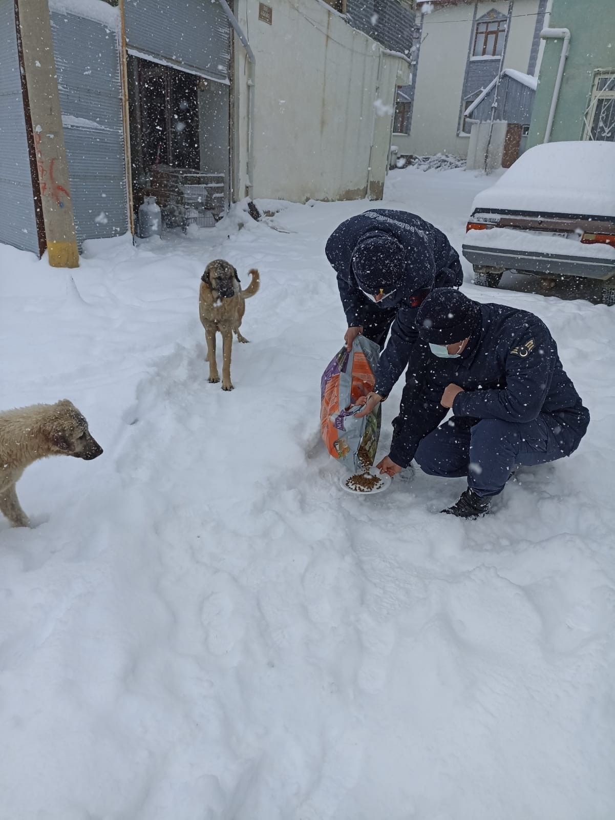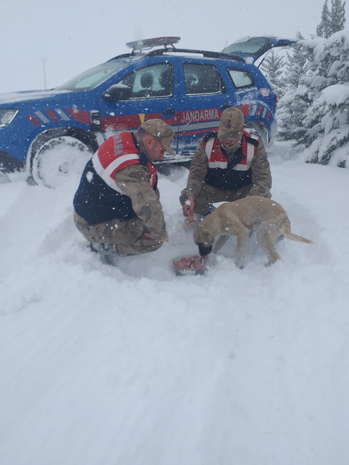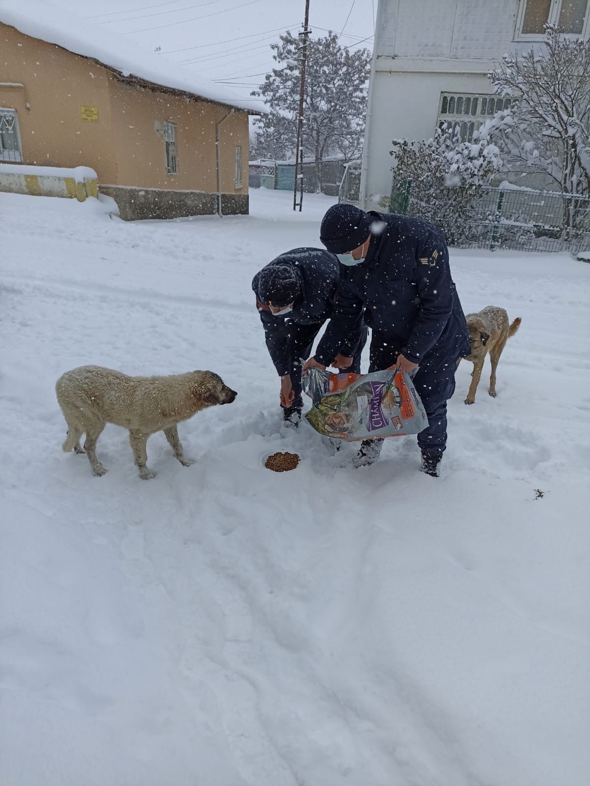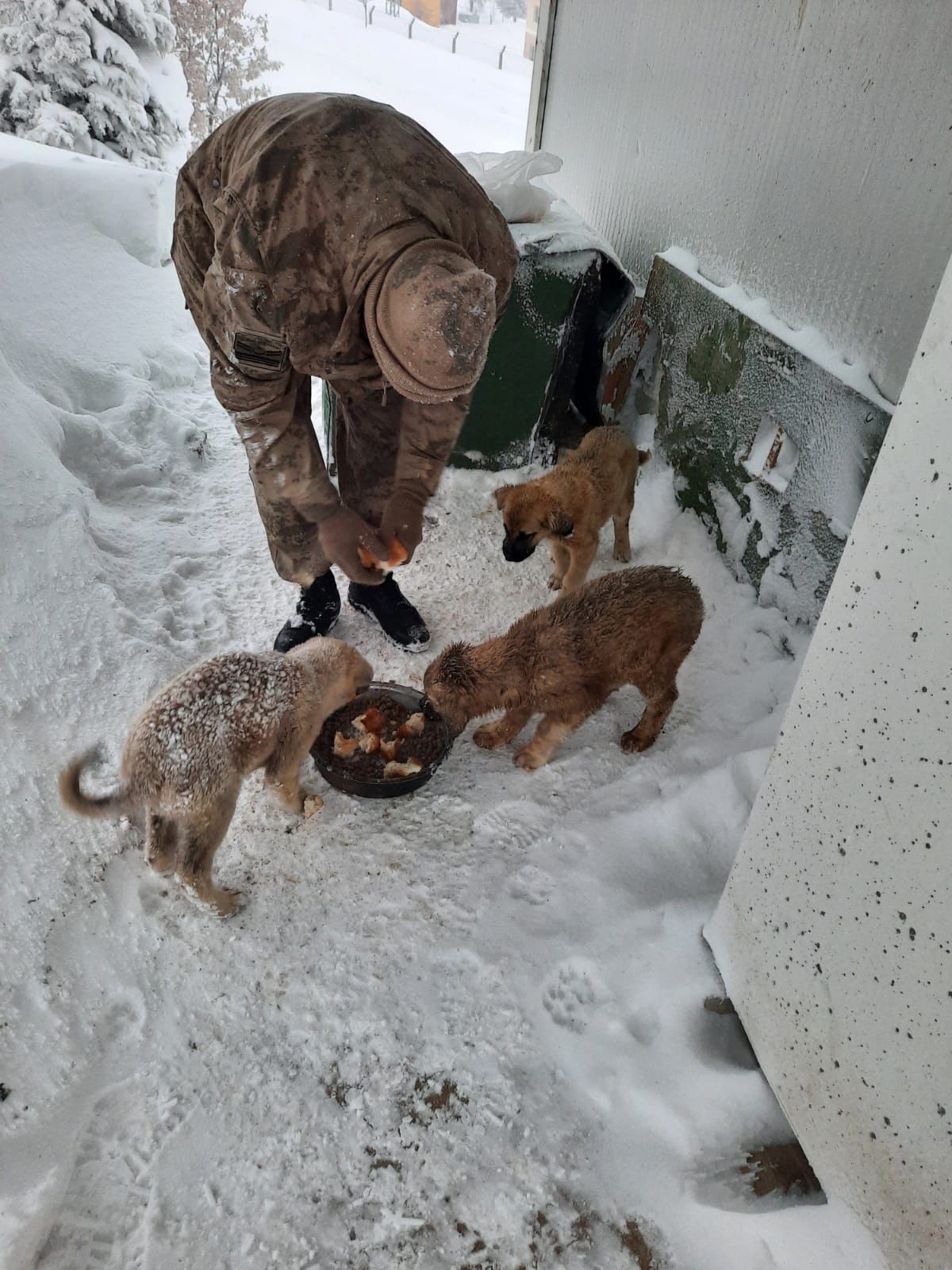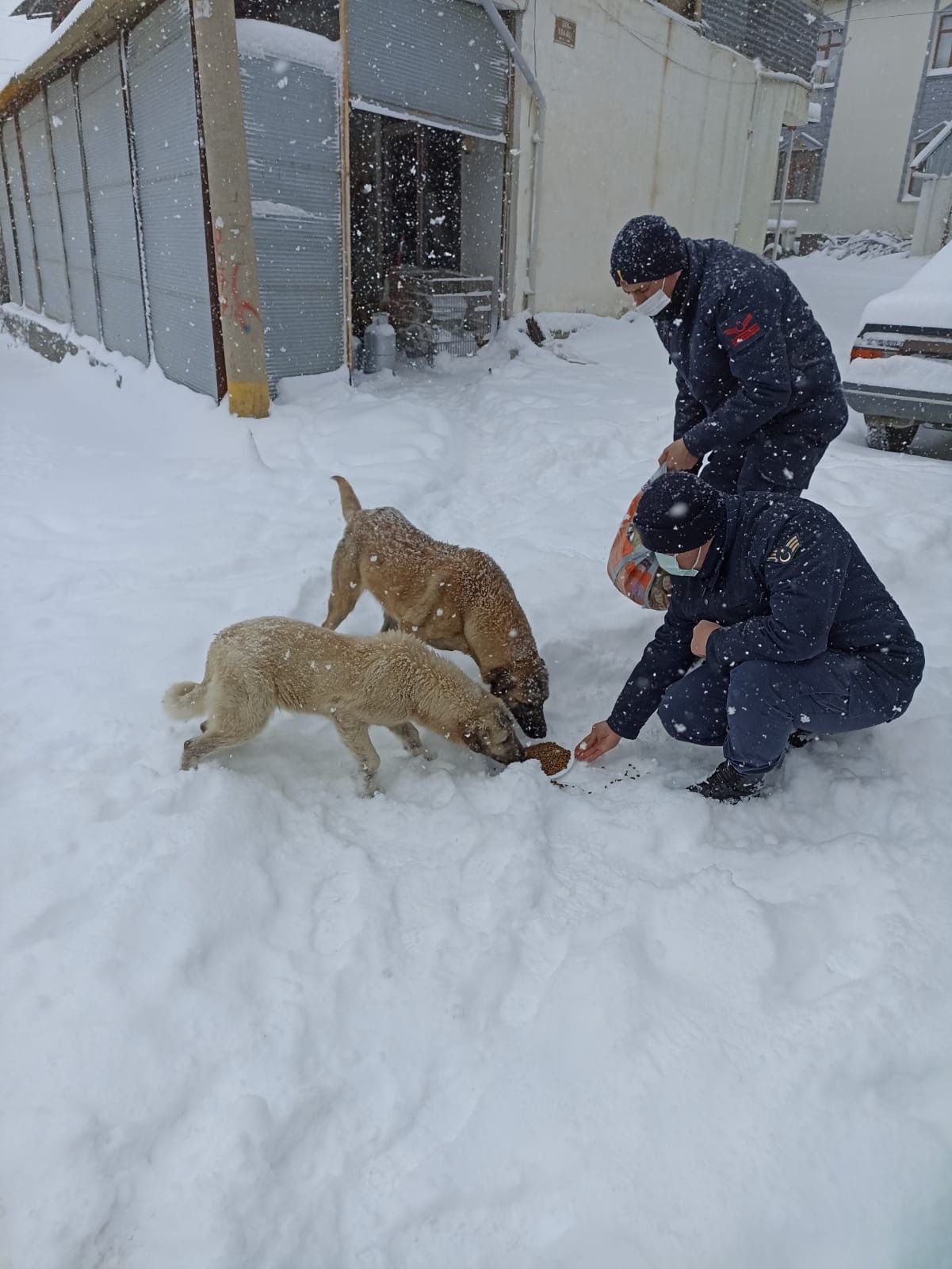 After arrival of the winter and snowfall lasting 2 days, severe colds are being effective in Elazığ. Elazığ Provincial Gendarmerie Command teams they didn’t forget the street animals on freezing cold weather. Like they stood by with the citizens who were stuck in the snowfall, the Gendarmerie teams warmed up the hearts by giving food and fresh water to the street animals which had difficulty in finding food, especially on cold winter days. While some of the Gendarmerie personnel fed the street animals with their bare hands despite the severe cold.