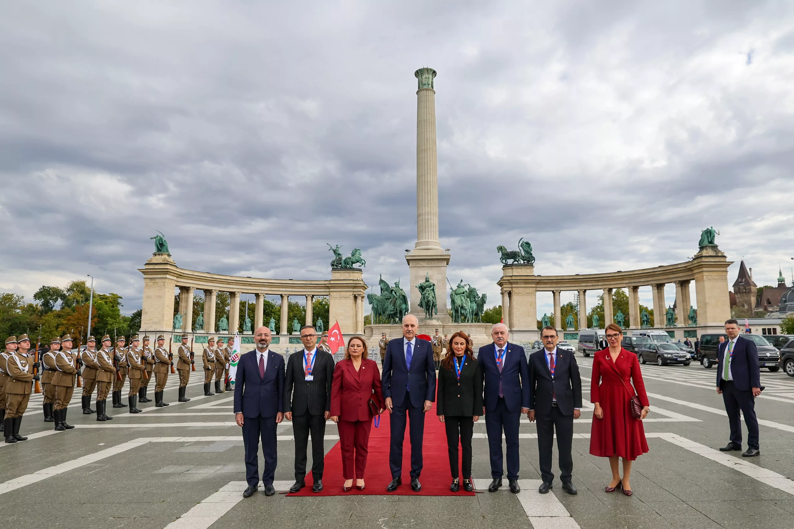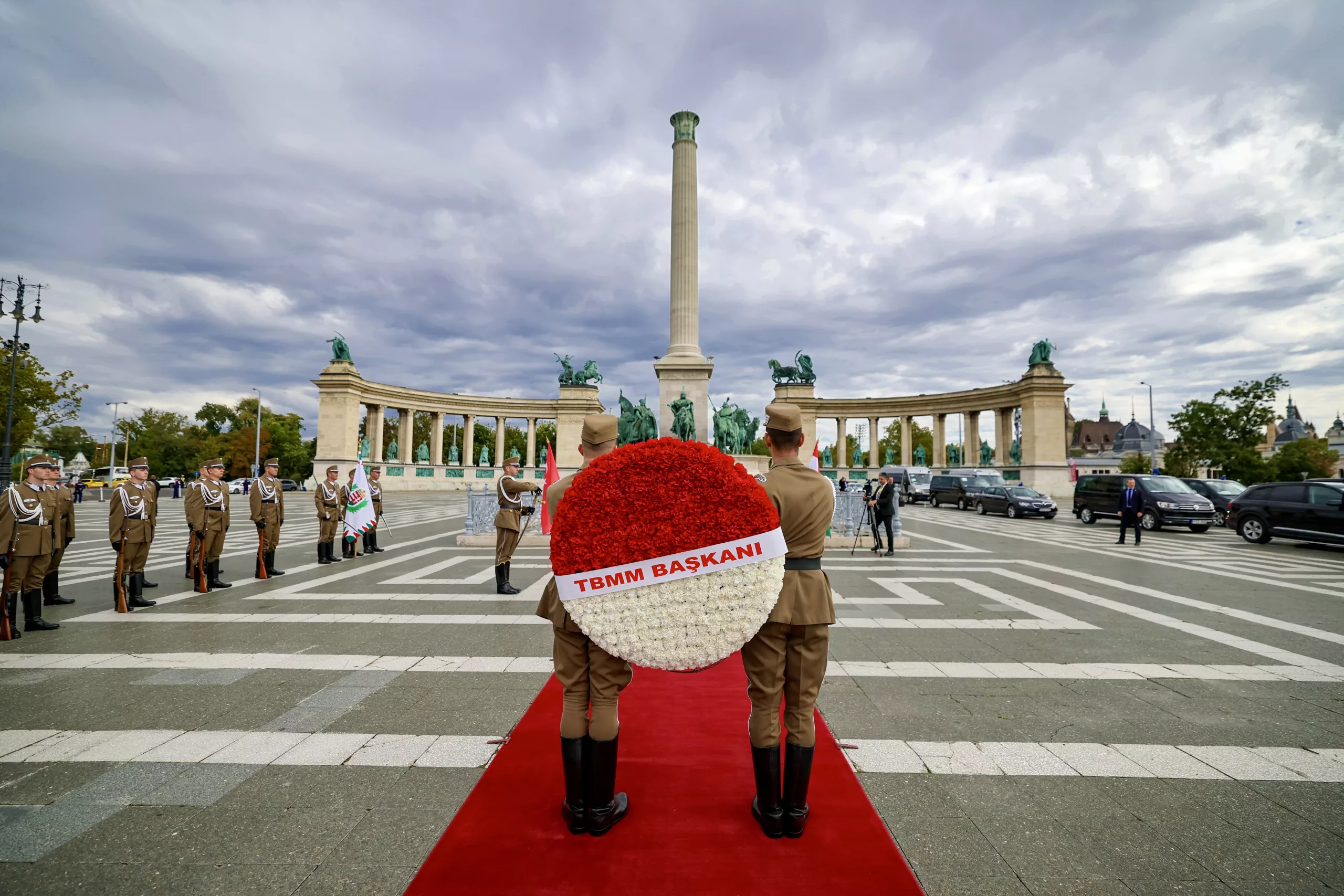 Speaker of the Grand National Assembly of Türkiye, Numan Kurtulmuş, laid a wreath at the Monument of the Unknown Soldier in Heroes’ Square during his official visit to Budapest. He was accompanied by a parliamentary delegation and welcomed with military honors before continuing his program at the Hungarian National Assembly.