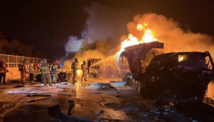 Fire crews brought the blaze under control after 2.5 hours. Authorities said fuel leaked into nearby rice fields and waterways. Police have launched a full investigation into the cause of the acciden
