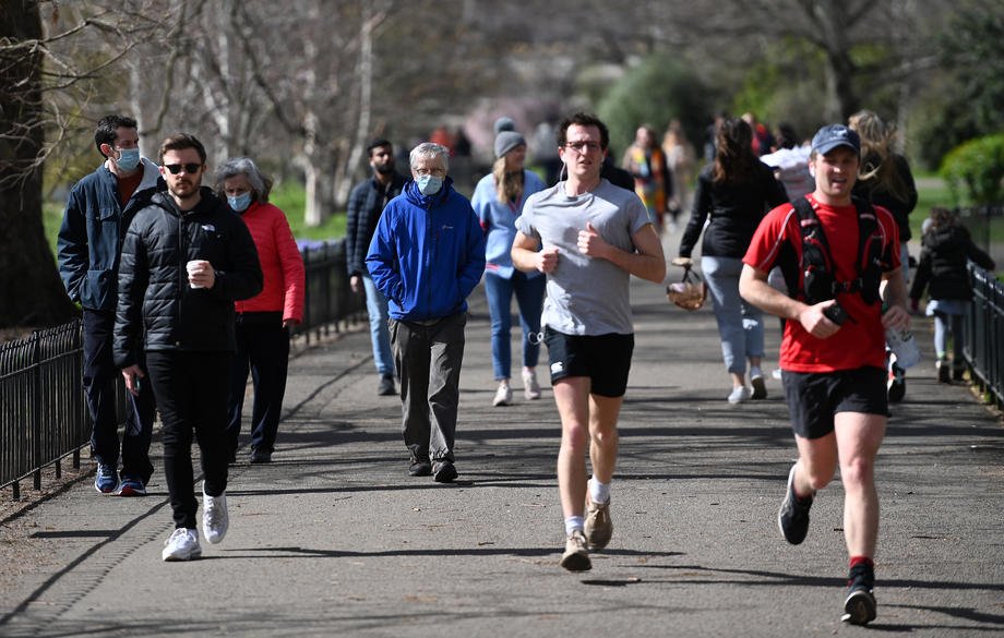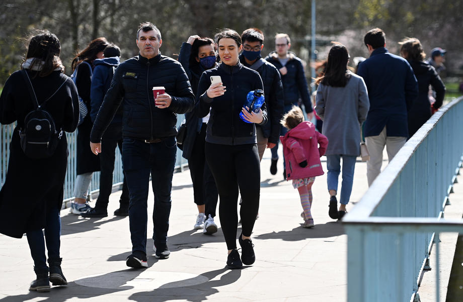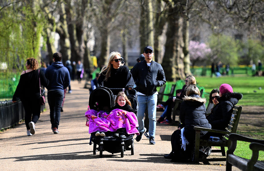 On Monday, hundreds of people flocked to the streets after starting to normalize its crackdown COVID-19 restrictions in UK. Hundreds of people enjoyed the spring weather at St.James’s Park in London, 29 March 2021.