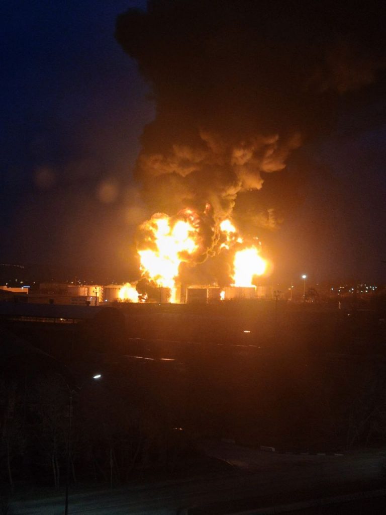 “The fuel storage was attacked by 2 helicopters of the Ukrainian army, which entered the Russian airspace by low altitude flight. No casualties were reported in the attack. The Ministry of Emergency Situations of Russia (EMERCOM) is working to extinguish the fire as soon as possible. There is no threat to the citizens” Gladkov said.