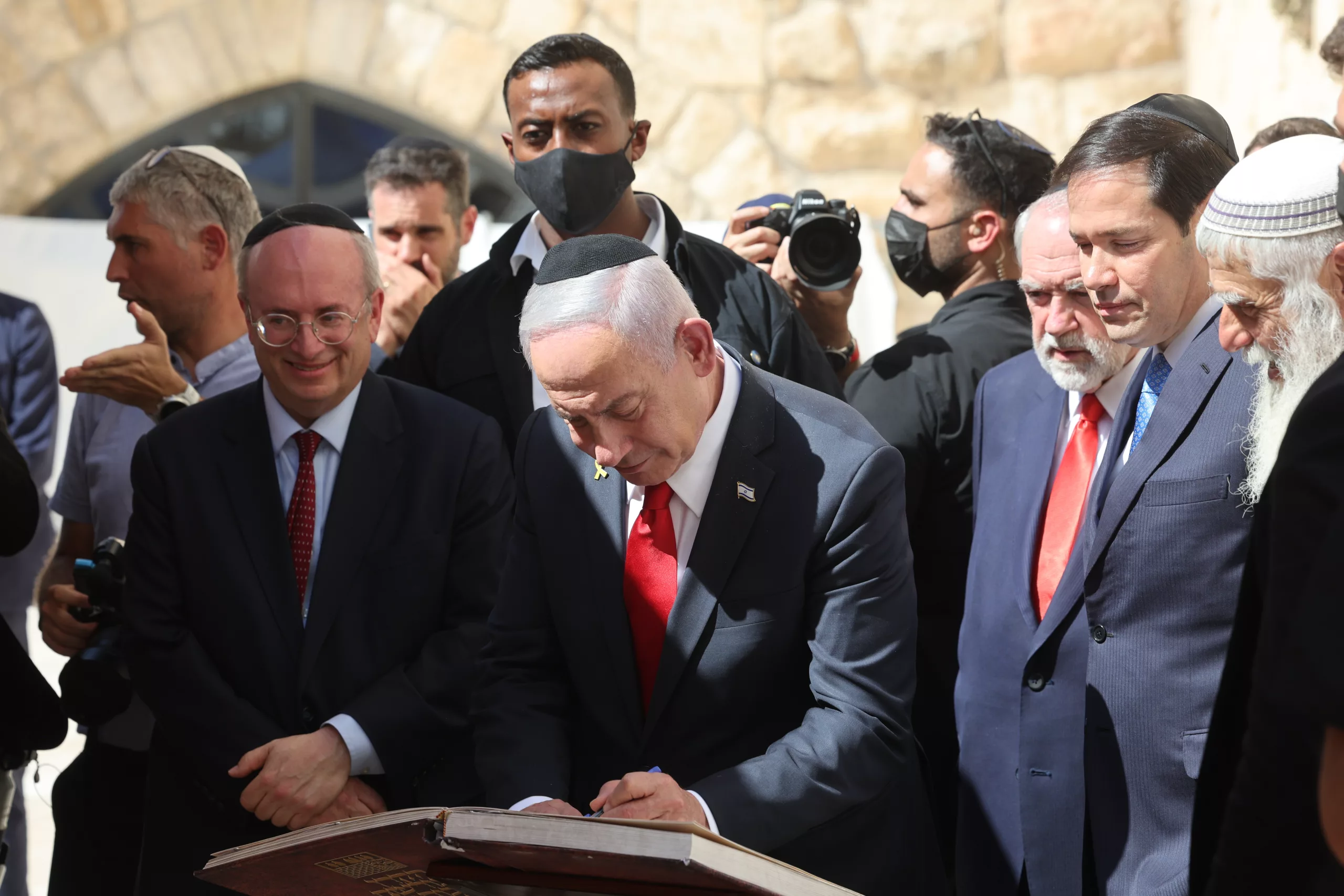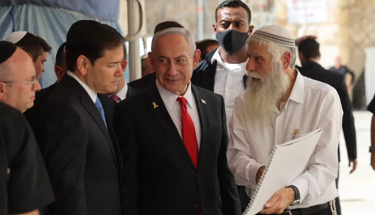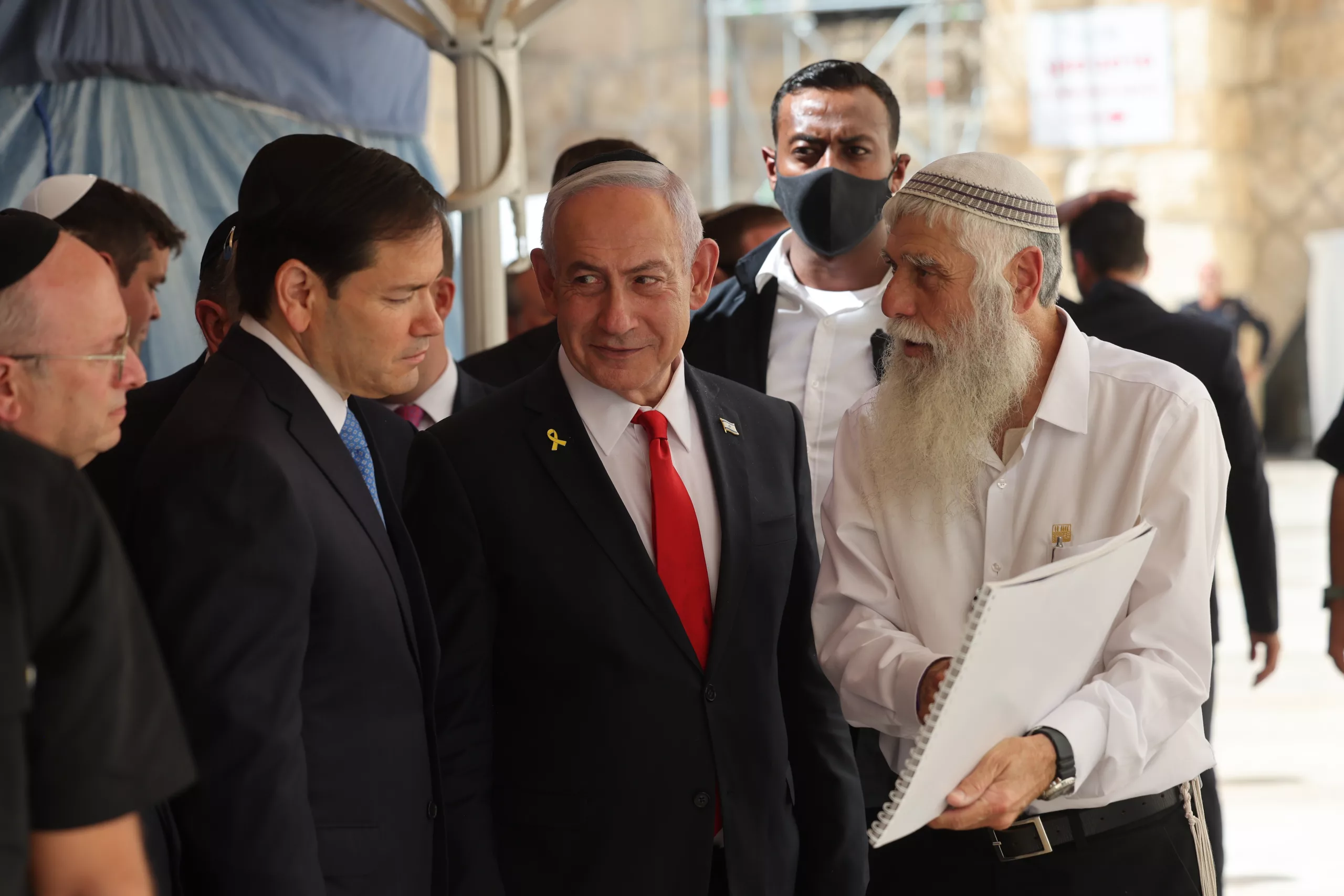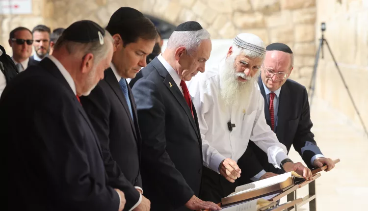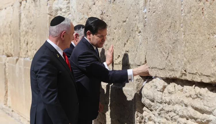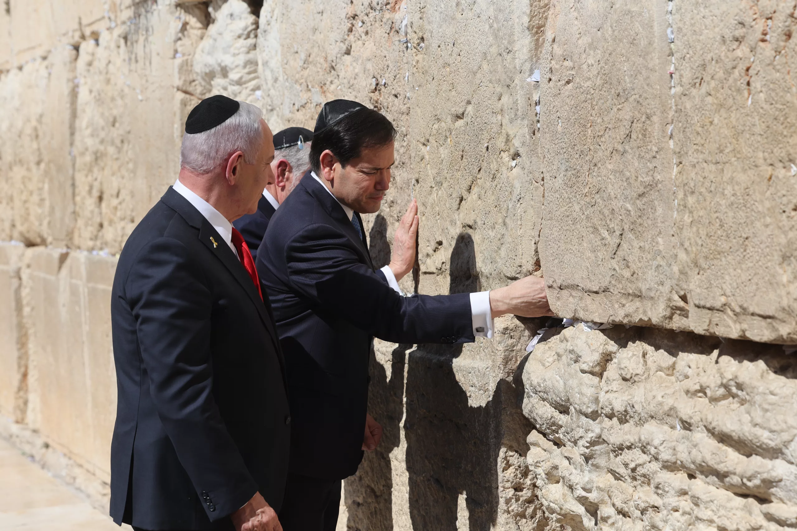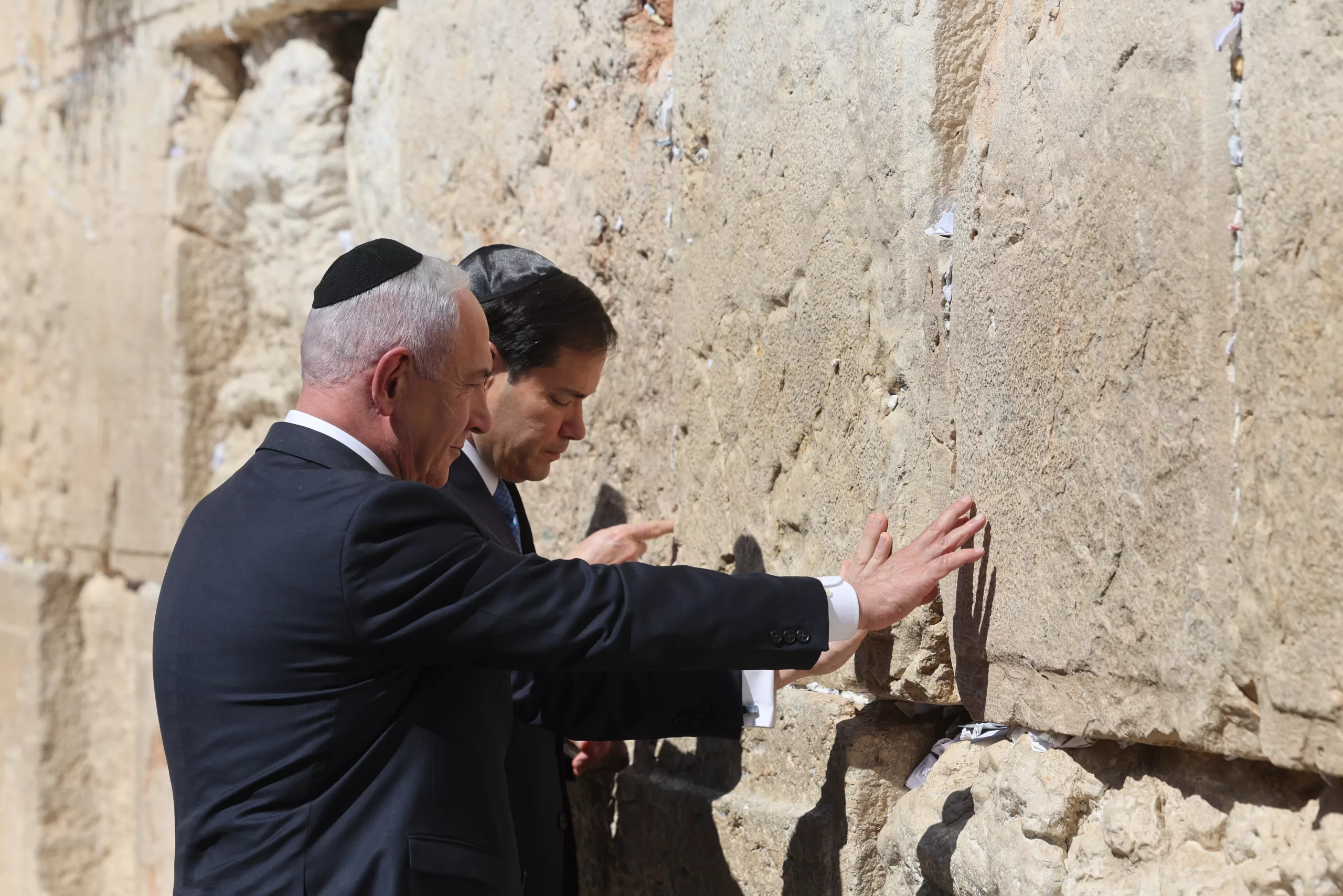 US Secretary of State Marco Rubio began his Israel visit at Jerusalem’s Western Wall, accompanied by Prime Minister Benjamin Netanyahu and US Ambassador Mike Huckabee. The three prayed at the site and placed notes in the wall.