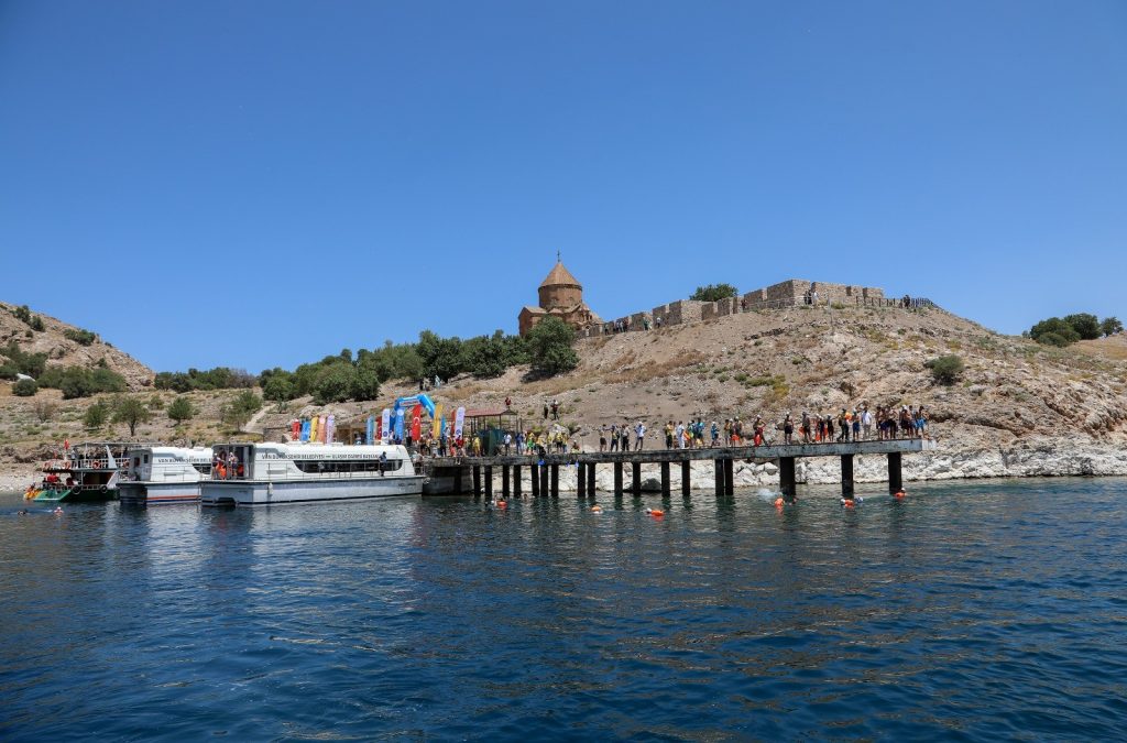 Organized for the second time this year to introduce Lake Van to the world, the Van Sea Swimming Festival in Türkiye’s Van province offered colorful scenes. On the last day of the festival, which started with a diving program microbialites on the first day, approximately 150 swimmers swam through a challenging four-hour course from Lake Van to Akdamar Island.