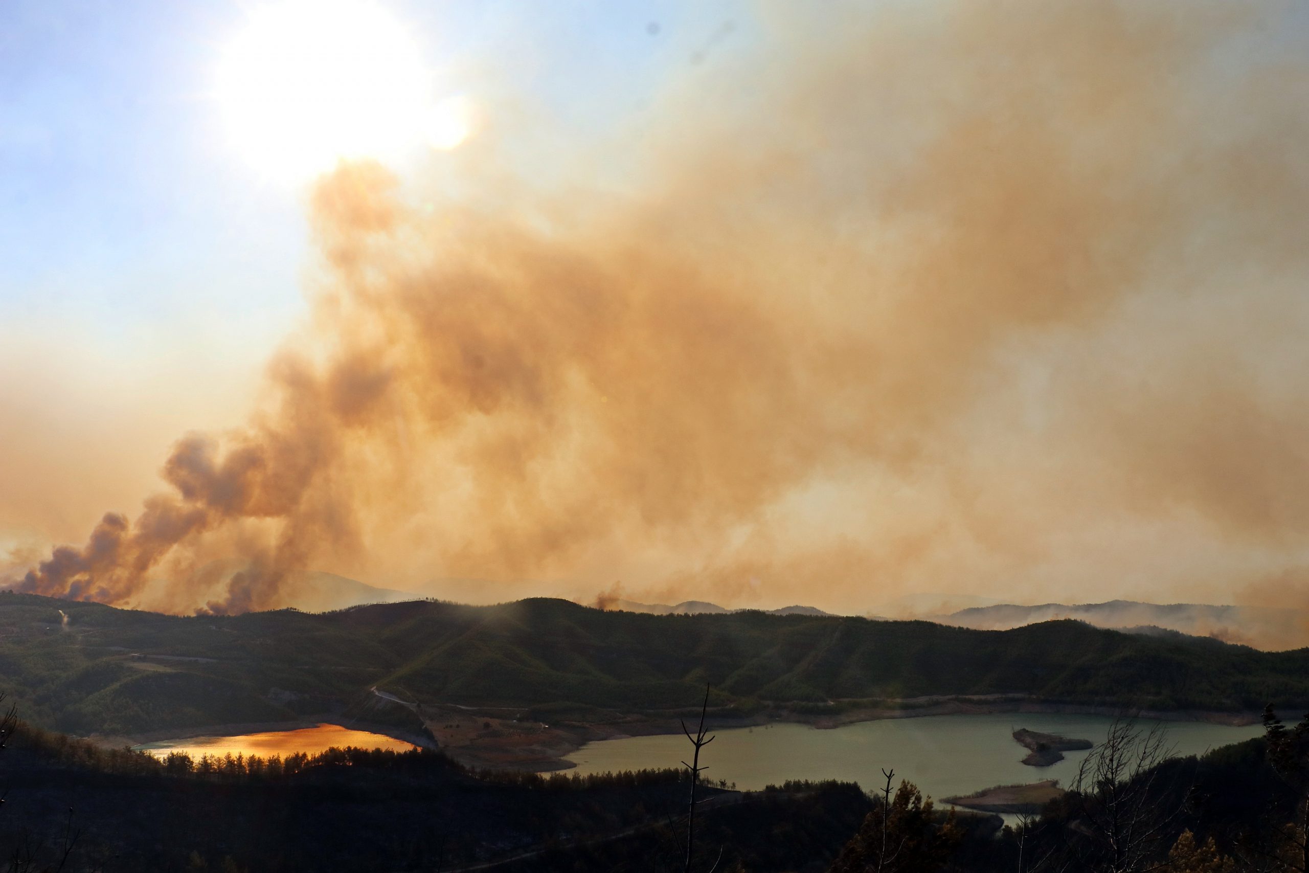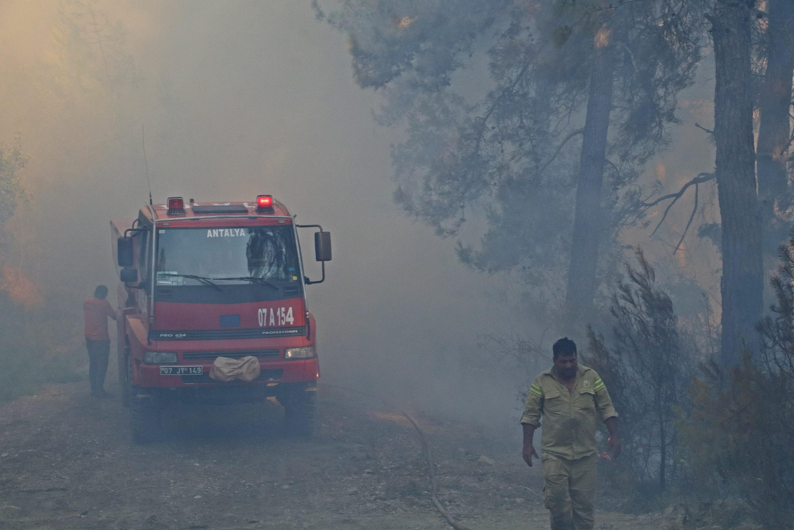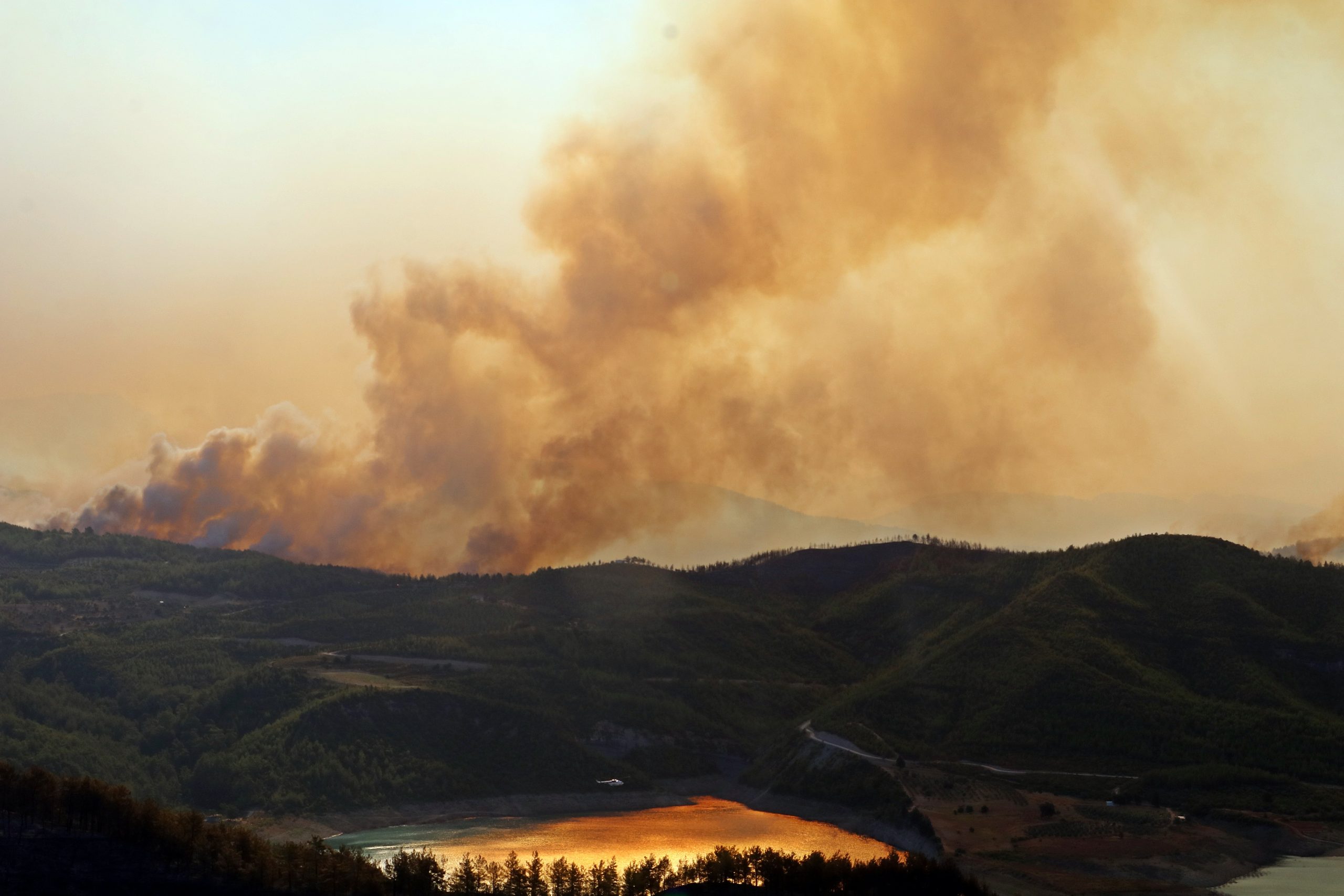 In Turkey, the wildfire started on July 28 in Antalya’s Manavgat district continues at different points. The sky is filled with smoke, and the flames spread rapidly due to fast wind. A couple firefighters injured during the extinguishing efforts which is still continued.
