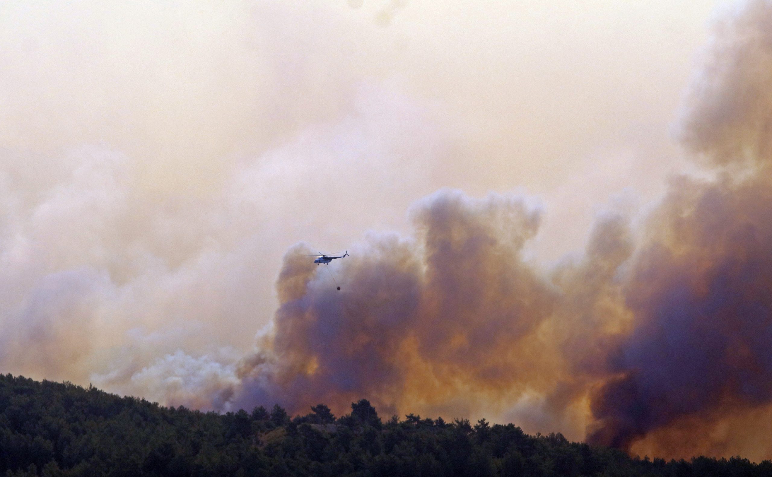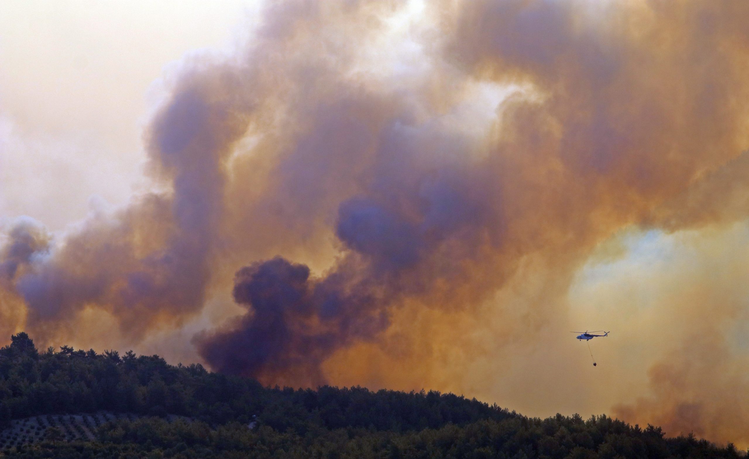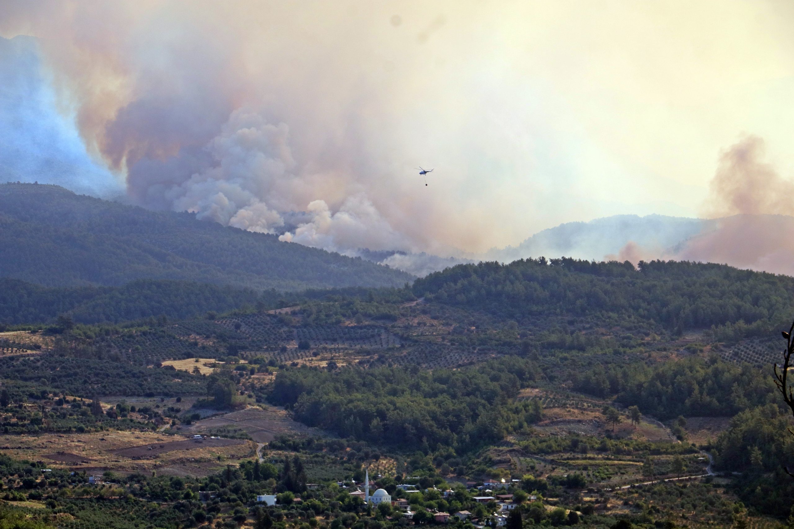 In Turkey, the wildfire started on July 28 in Antalya’s Manavgat district continues at different points. The sky is filled with smoke, and the flames spread rapidly due to fast wind. A couple firefighters injured during the extinguishing efforts which is still continued.