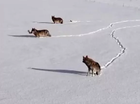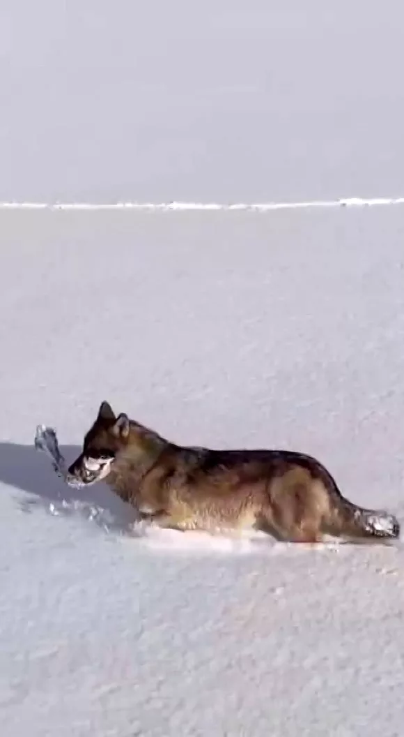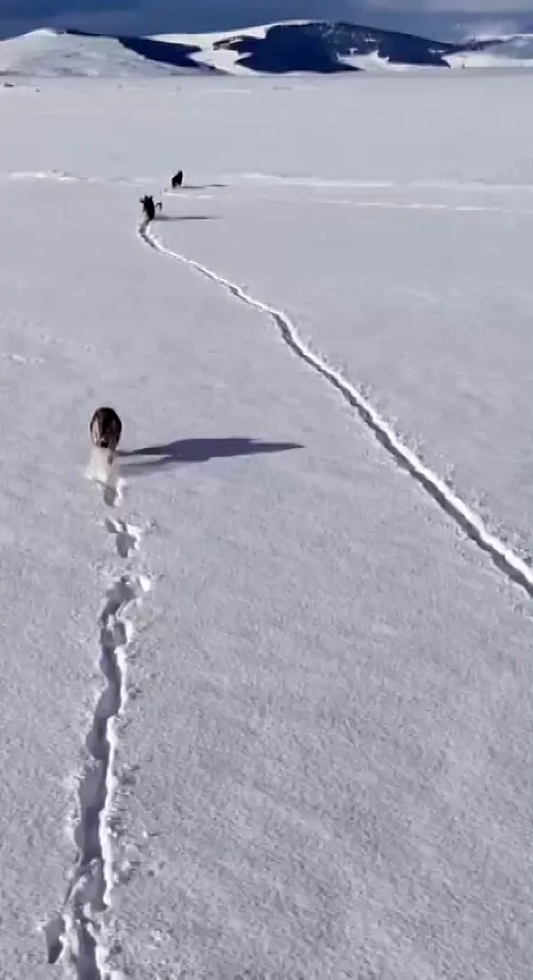 Wolves struggling to find food were spotted in the snow-covered Göle district of Ardahan, eastern Türkiye, where freezing temperatures and heavy snowfall persist. Drone footage captured one wolf carrying a large bone across the vast white landscape.