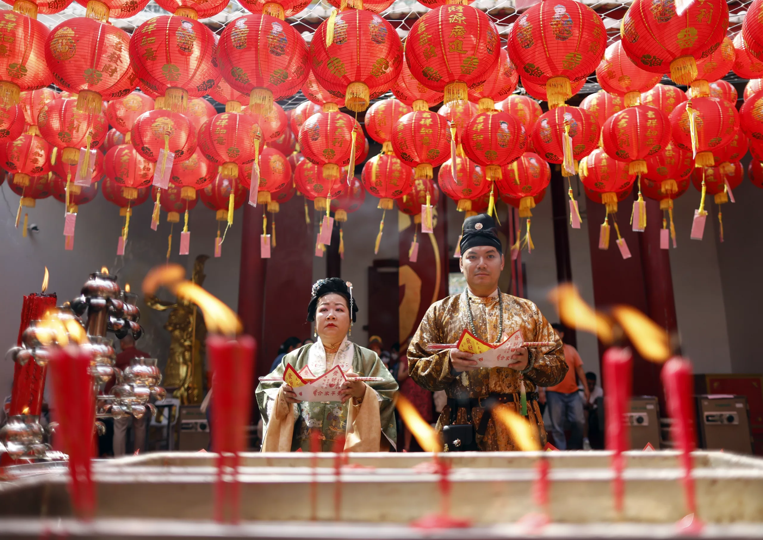 As part of the Lunar New Year, also known as the Spring Festival, people gathered at temples to pray for good fortune. At midnight, fireworks lit up the skies, ushering in the new year, which is also called “Tết” in Vietnam and “Seollal” in Korea.
